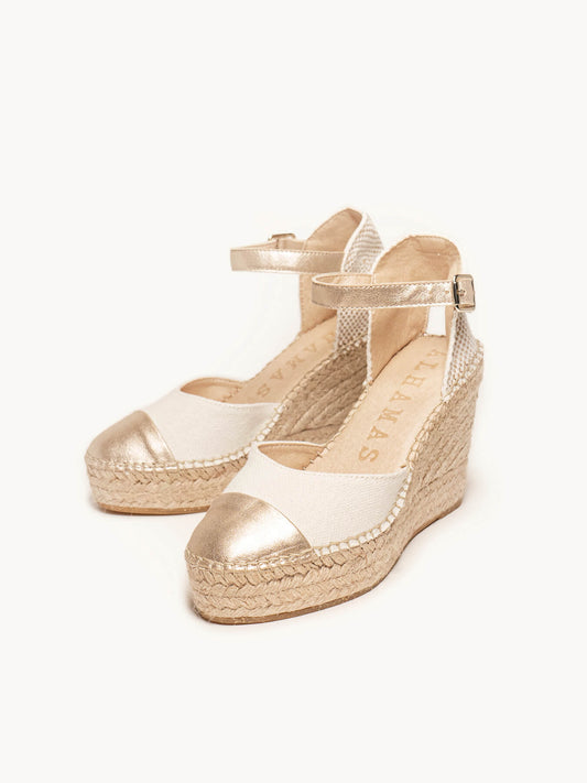 Alhamas son alpargatas cómodas, ya que la plantilla acolchada que hemos puesto en la planta hace que sean las alpargatas para novia más cómodas del mundo. Alpargatas de novia cuña alta, alpargatas de novia cuña media, alpargatas de plataforma y alpargatas planas son las 4 alturas que Alhamas tiene en su colección de alpargatas novia. También podrás encontrar alpargatas con cinta y alpargatas con pulsera y bailarinas, . También disponemos de complementos como cintas de algodón y cintas de tul para que personalices tus alpargatas de novia de la manera más especial. Alpargatas cosidas a mano en La Rioja por nuestros maestros artesanos, alpargatas artesanales echas como lo hacían nuestros abuelos durante toda su vida, a fuego lento y puntada a puntada.