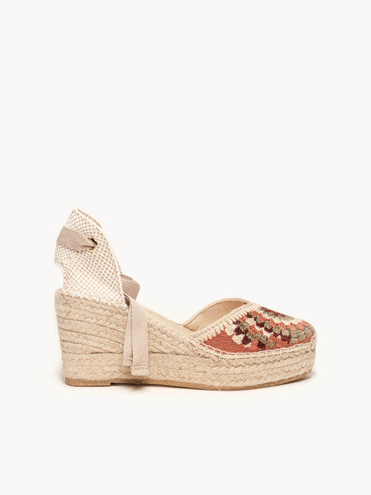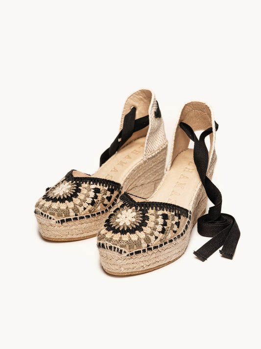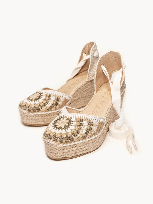 Alhamas son alpargatas cómodas, ya que la plantilla acolchada que hemos puesto en la planta hace que sean las alpargatas más cómodas del mundo. Alpargatas de cuña alta, alpargatas de cuña media, alpargatas de plataforma y alpargatas planas son las 4 alturas que Alhamas tiene en su colección. También podrás encontrar alpargatas con cinta y alpargatas con pulsera, bailarinas, slippers e incluso botas con cuña y botines con cuña de entretiempo. También disponemos de complementos como cintas de algodón para alpargatas de numerosos colores, y también pañuelos, para que puedas combinar y dar un toque diferencial a tus alpargatas Alhamas. Alpargatas cosidas a mano en La Rioja por nuestros maestros artesanos, alpargatas artesanales echas como lo hacían nuestros abuelos durante toda su vida, a fuego lento y puntada a puntada.