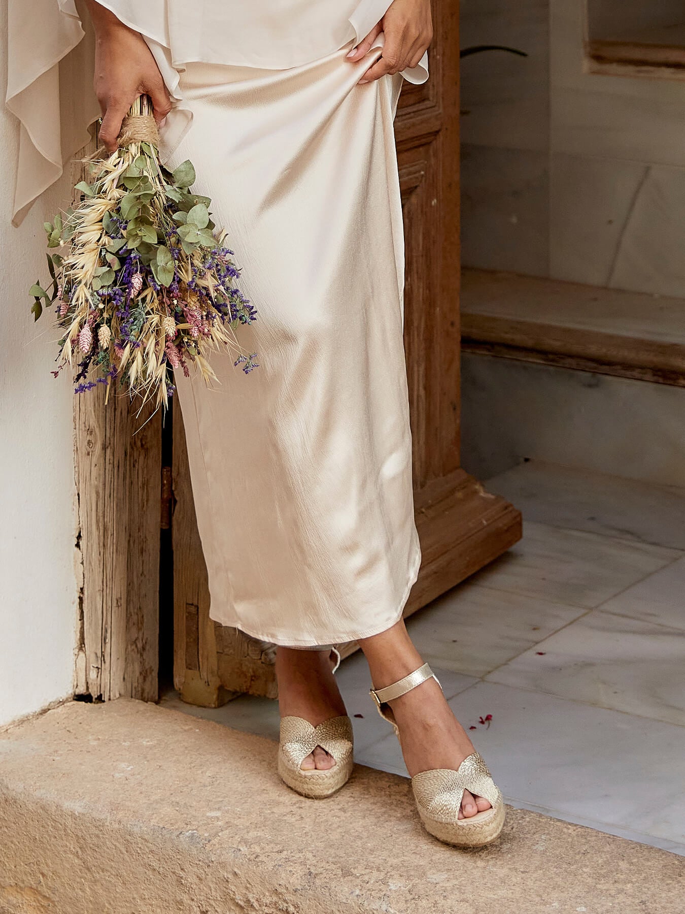 - Iniciales en la cuña, podrás elegir las dos iniciales que prefieras y las colocaremos en la cuña de tus alpargatas de novia.