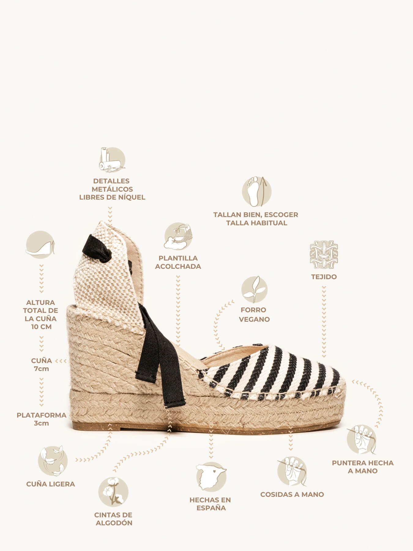 Alpargata Cuña Alta: 10 cm totales (3 de plataforma + 7 de cuña).