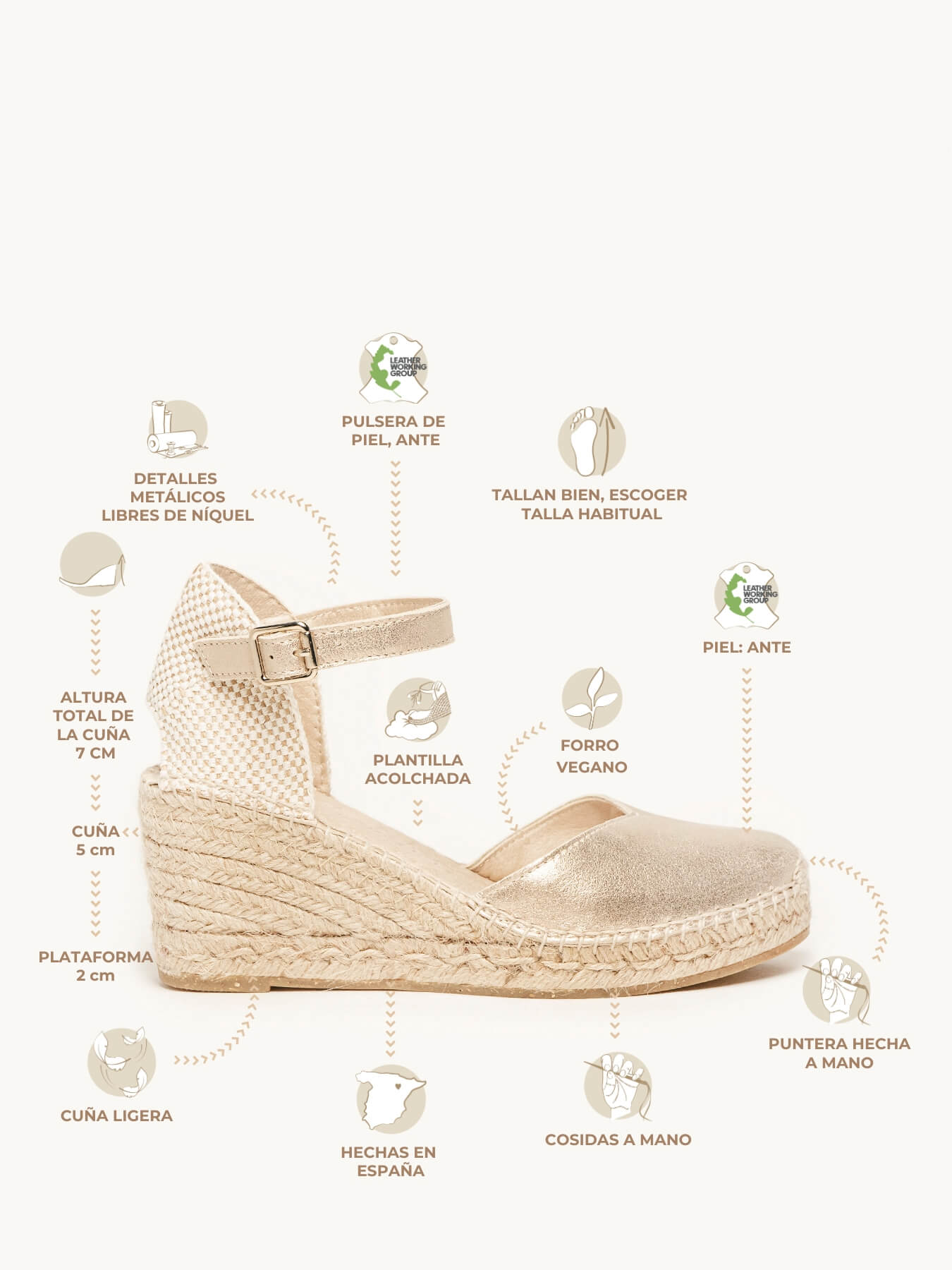 - El Ante Metal de la alpargata Jara está certificado por el Leather Working Group (una organización que promueve prácticas ambientales sostenibles)