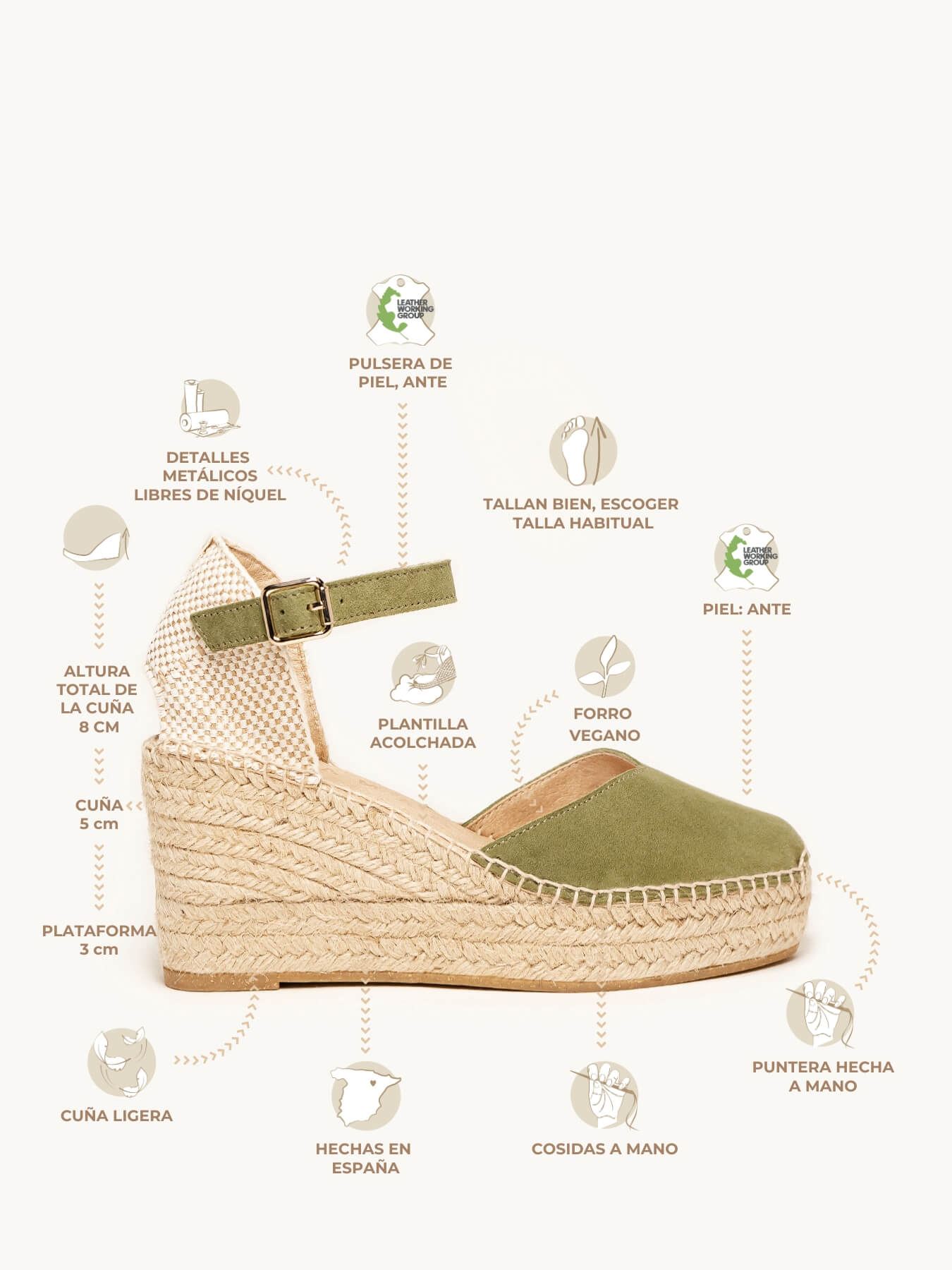 - El Ante de la alpargata Jara está certificado por el Leather Working Group (una organización que promueve prácticas ambientales sostenibles)