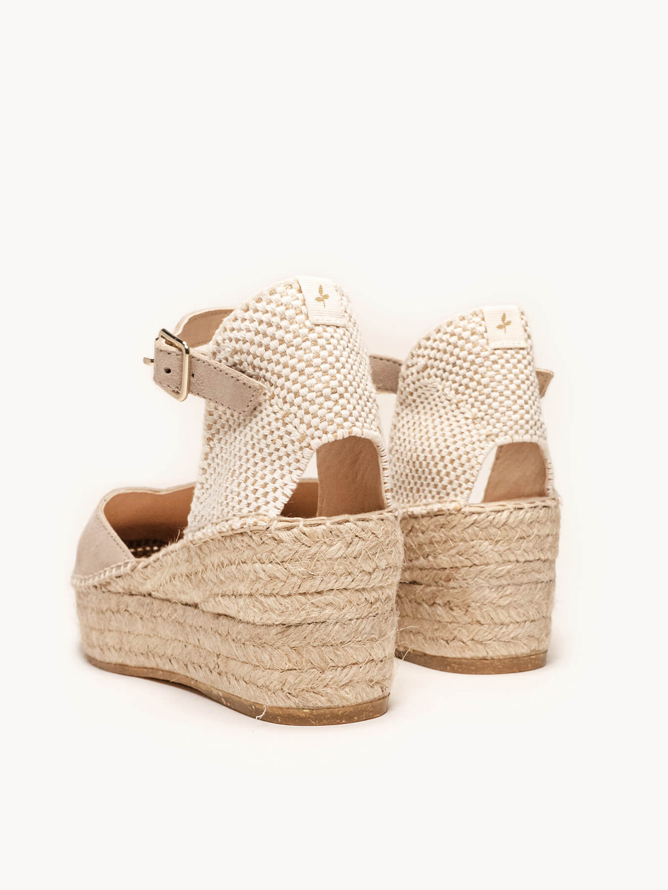 - The lining and insole are made of breathable and antibacterial microfiber. Natural jute braid wedge with recycled rubber sole, mixed with natural fibers