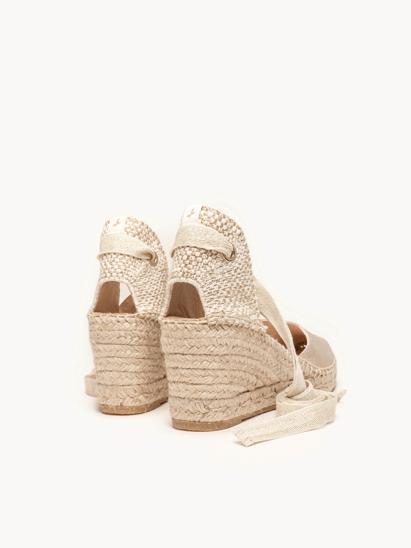 - Cuña de trenza de Yute natural con suela de goma reciclada mezclada con fibras naturales.