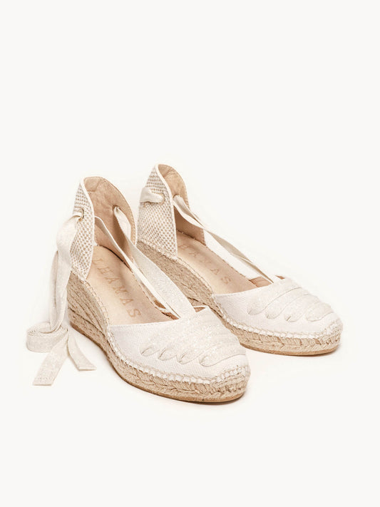 Espliego Mid Wedge Linen White Glitter