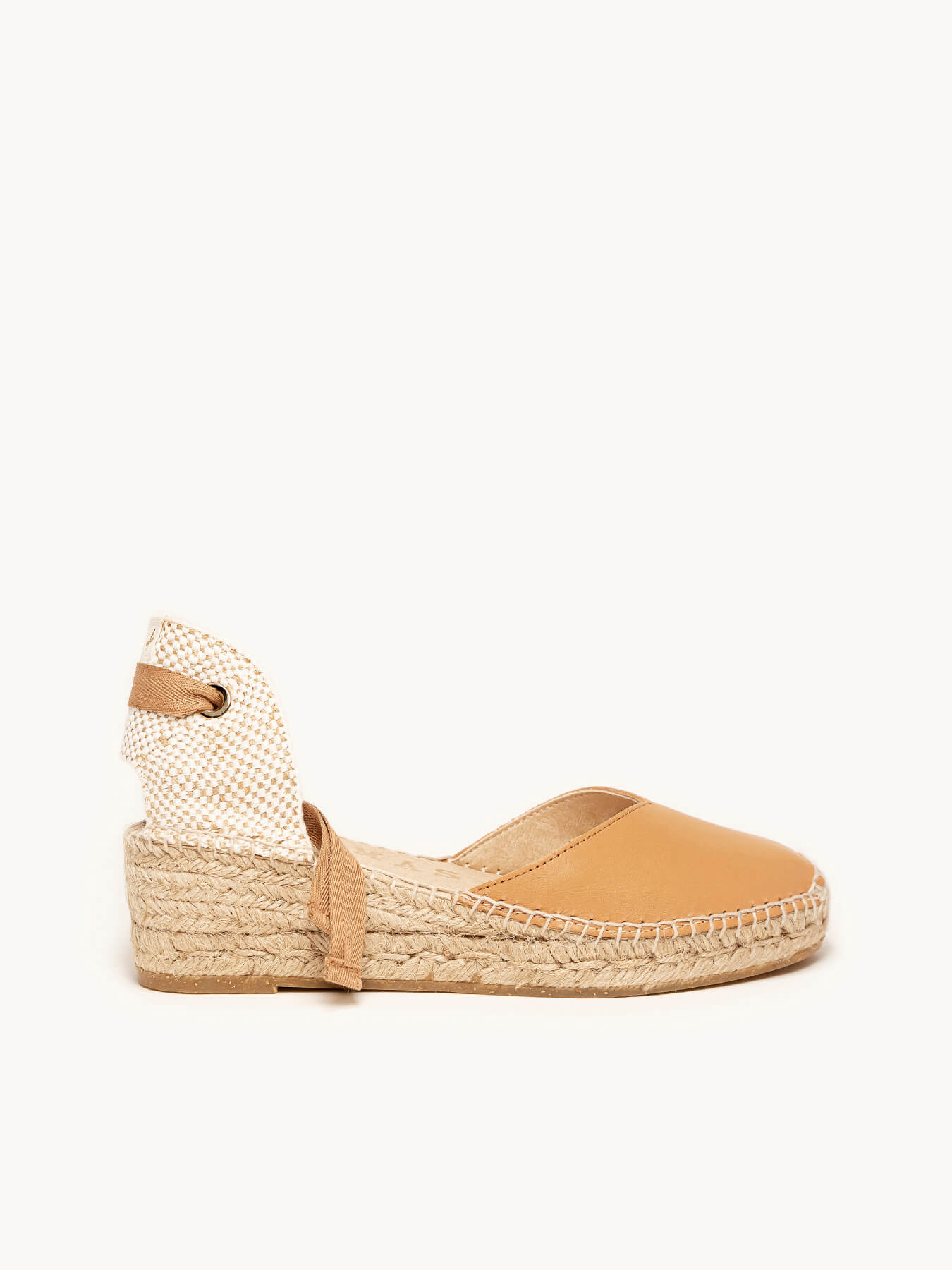 - Cuña de trenza de Yute natural con suela de goma reciclada mezclada con fibras naturales.