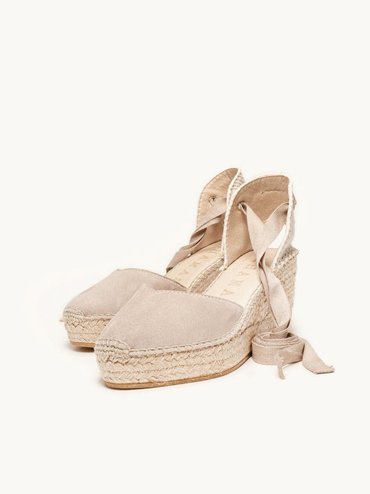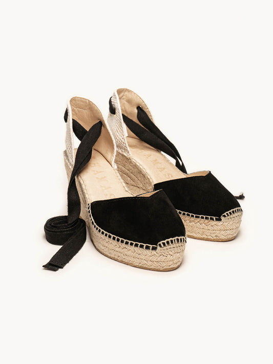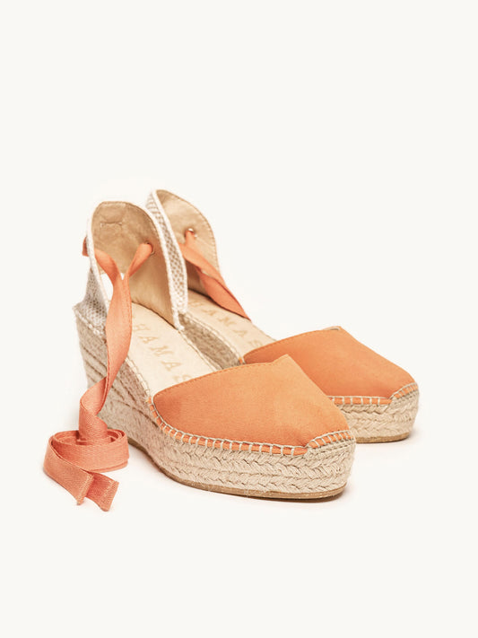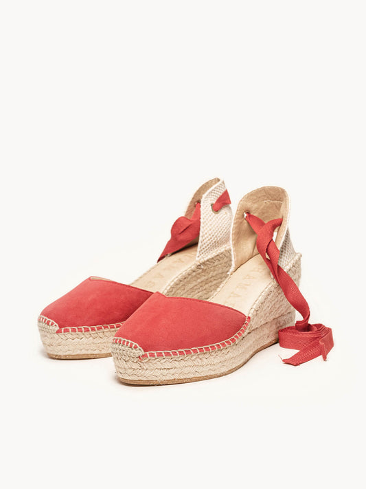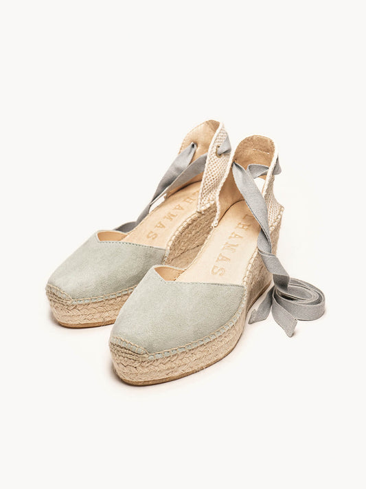 In mid wedge espadrilles, you'll find mid wedge ribbon espadrilles and mid wedge strap espadrilles, and of course, we have accessories like cotton ribbons for espadrilles in numerous colors, as well as scarves, so you can mix and match and give a distinctive touch to your Alhamas espadrilles and wear them this summer, opting for original, handmade, and comfy espadrilles.