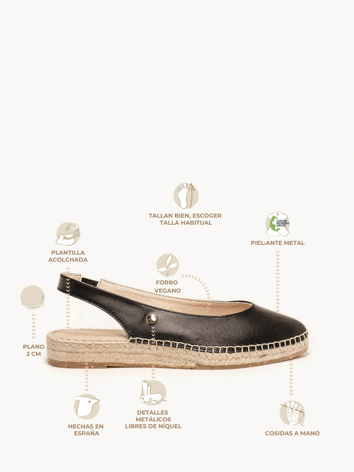 - La Napa de la alpargata Camelia está certificada por el Leather Working Group (una organización que promueve prácticas ambientales sostenibles) El forro y la plantilla son de micro fibra transpirable y anti bacteriana. Suela de trenza de Yute natural con goma reciclada mezclada con fibras naturales. Elementos metálicos libres de níquel. Hilo de cosido a mano de algodón.