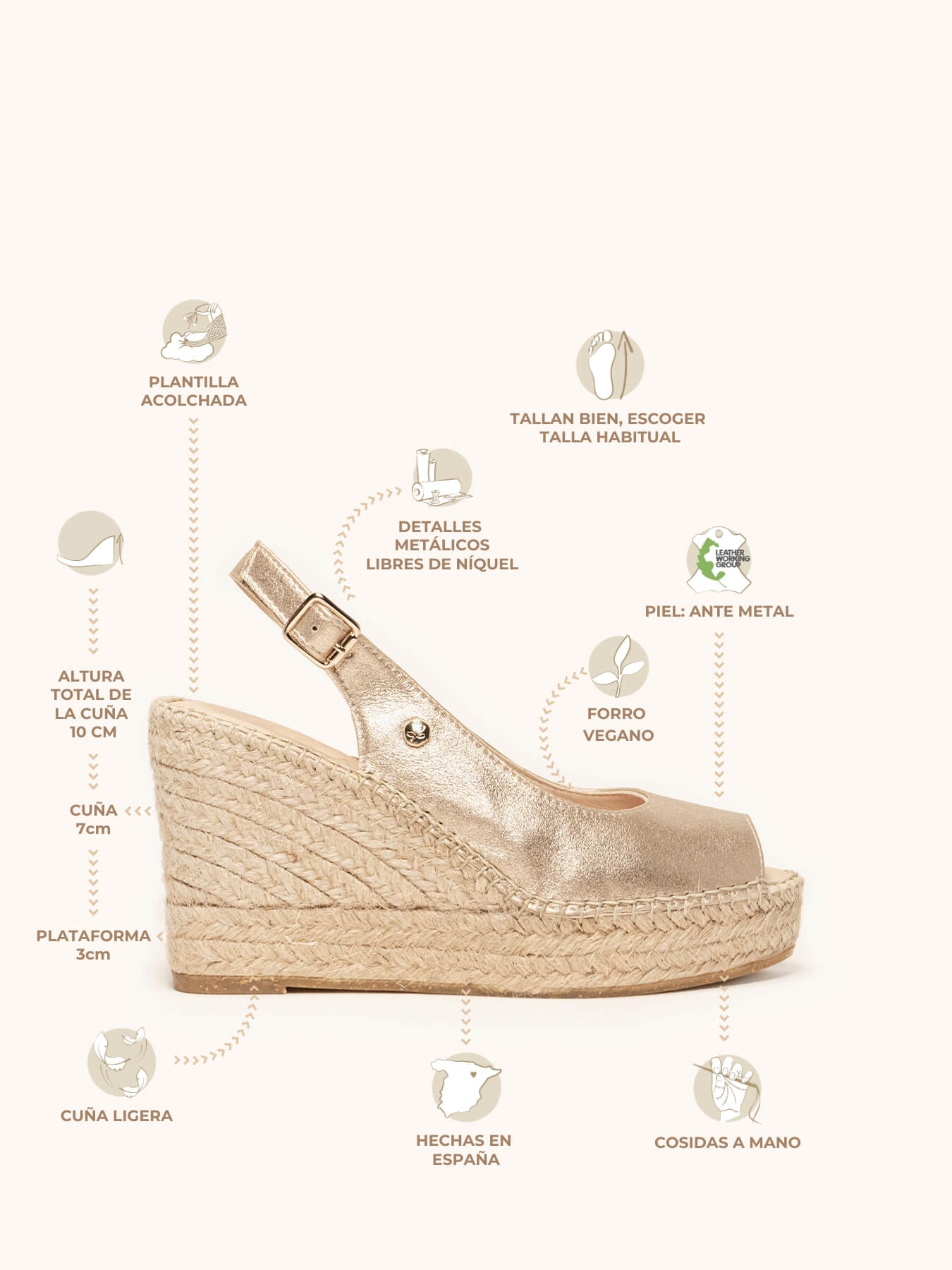 Alpargata Cuña Alta: 10 cm totales (3 de plataforma + 7 de cuña).