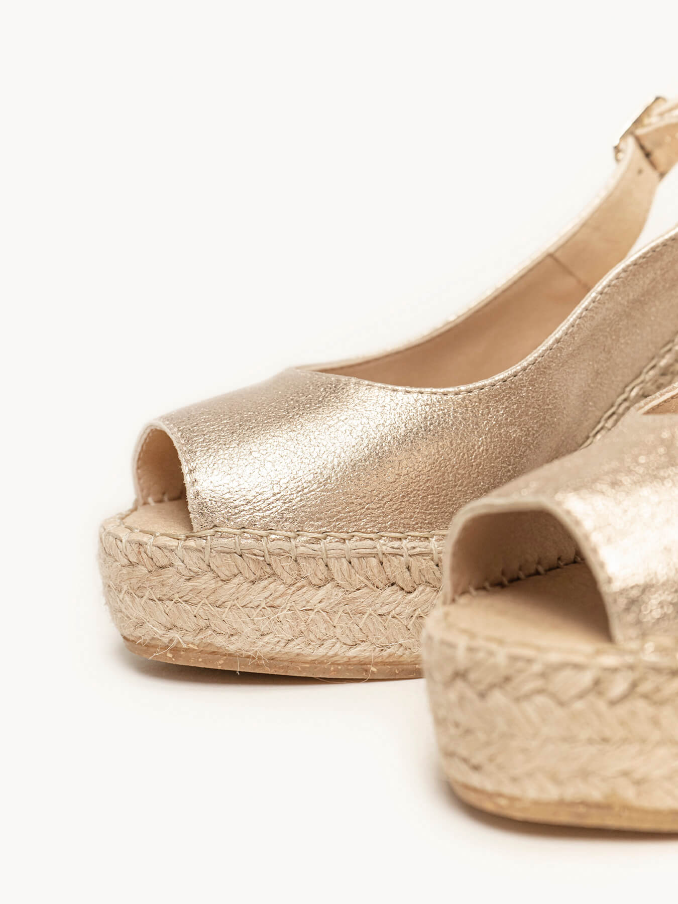 -The Clavel model's nappa leather is certified by the Leather Working Group (an organization that promotes sustainable environmental practices) The lining and insole are made of breathable and anti-bacterial microfiber. Natural jute braided wedge with recycled rubber sole mixed with natural fibers. Nickel-free metallic elements. Hand-stitched cotton thread.