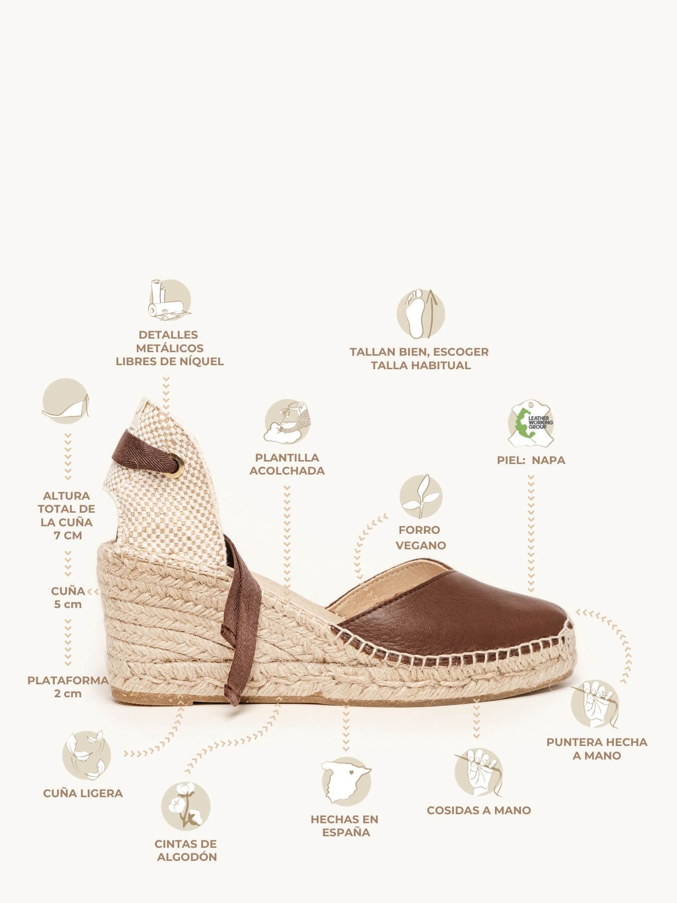- Cuña de trenza de Yute natural con suela de goma reciclada mezclada con fibras naturales.
