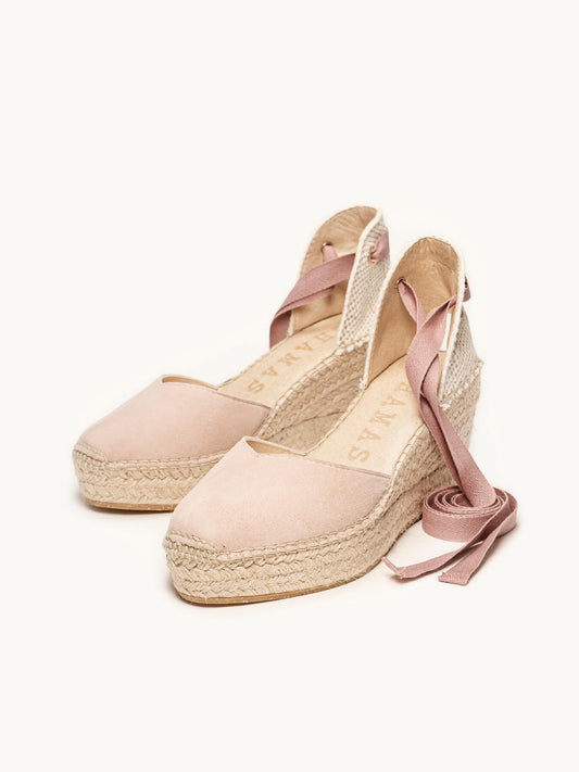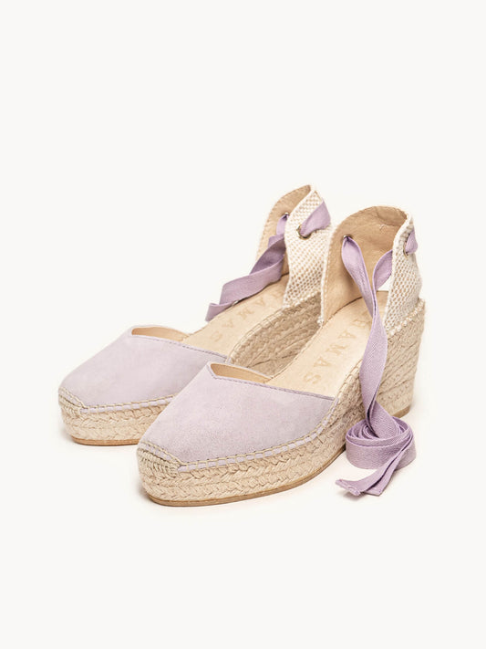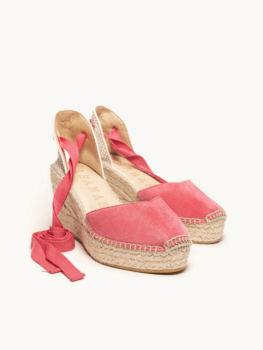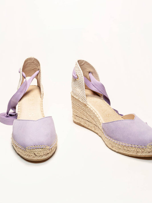 Our ribbon espadrilles are super comfy! Handcrafted artisanal espadrilles sewn by hand in La Rioja by our skilled artisans, sustainable espadrilles made with recycled, natural, organic materials, and a selection of the best leathers certified by the "Leather Working Group". Ribbon espadrilles with comfort ensured by the padded insole that covers the entire sole. Comfortable wedge espadrilles with a 10-centimeter heel that you can wear all day long. You can tie your ribbon espadrilles in different ways. They're rural chic, timeless, wardrobe essentials with a splash of color and originality.