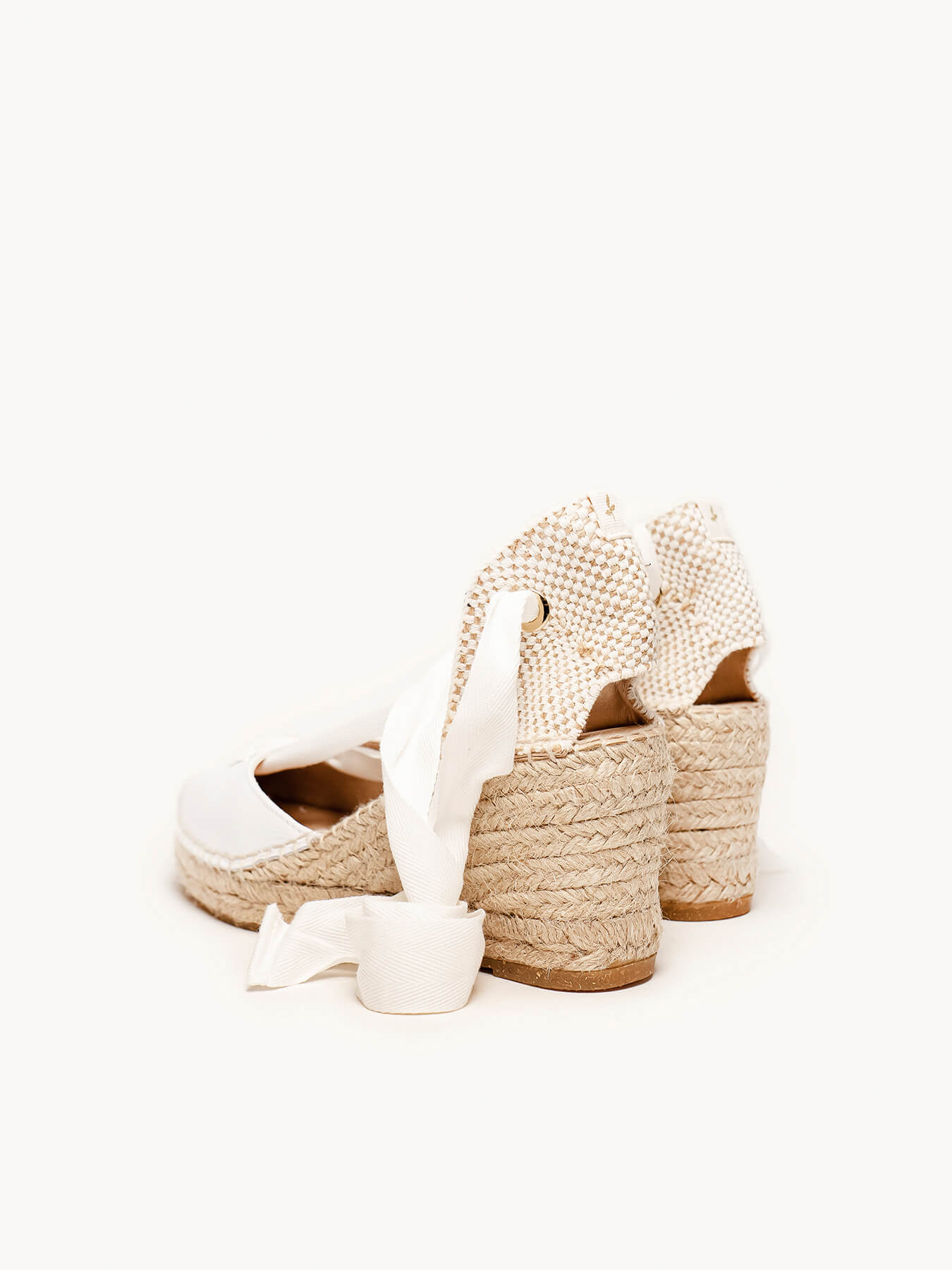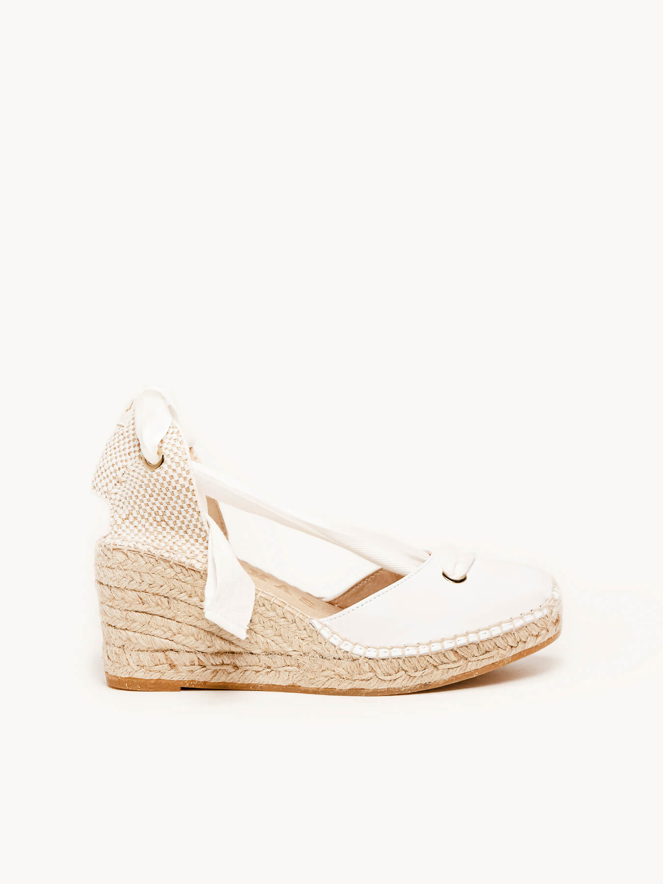 La alpargata de cuña media Melisa, es unos de nuestros modelos más tradicionales. Nuestra alpargata con cintas y escote redondo es un modelo muy versátil, ideal para el día a día y también para darle un toque muy chic a los looks más especiales. Podrás darle un toque especial porque las cintas se pueden cambiar.