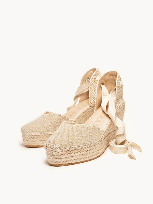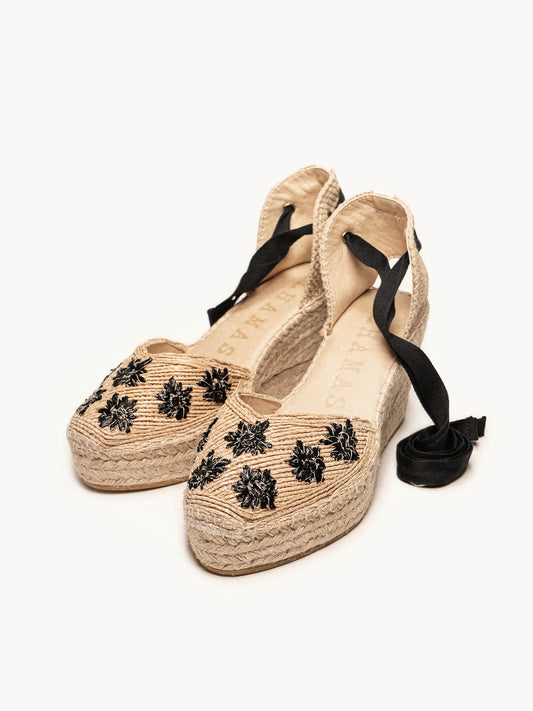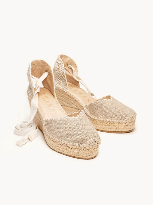 Alhamas son alpargatas cómodas, ya que la plantilla acolchada que hemos puesto en la planta hace que sean las alpargatas más cómodas del mundo. Alpargatas de cuña alta, alpargatas de cuña media, alpargatas de plataforma y alpargatas planas son las 4 alturas que Alhamas tiene en su colección. También podrás encontrar alpargatas con cinta y alpargatas con pulsera, bailarinas, slippers e incluso botas con cuña y botines con cuña de entretiempo. También disponemos de complementos como cintas de algodón para alpargatas de numerosos colores, y también pañuelos, para que puedas combinar y dar un toque diferencial a tus alpargatas Alhamas. Alpargatas cosidas a mano en La Rioja por nuestros maestros artesanos, alpargatas artesanales echas como lo hacían nuestros abuelos durante toda su vida, a fuego lento y puntada a puntada.