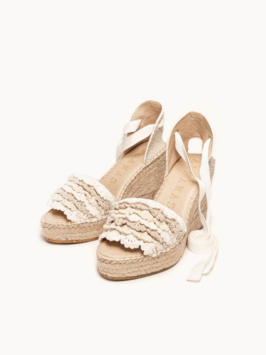 Aulaga Cuña Alta Volantes Ganchillo Blanco