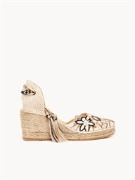 - Cuña de trenza de Yute natural con suela de goma reciclada mezclada con fibras naturales.