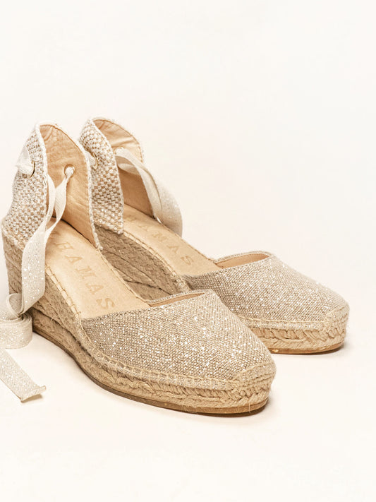Alhamas son alpargatas cómodas, ya que la plantilla acolchada que hemos puesto en la planta hace que sean las alpargatas para novia más cómodas del mundo. Alpargatas de novia cuña alta, alpargatas de novia cuña media, alpargatas de plataforma y alpargatas planas son las 4 alturas que Alhamas tiene en su colección de alpargatas novia. También podrás encontrar alpargatas con cinta y alpargatas con pulsera y bailarinas, . También disponemos de complementos como cintas de algodón y cintas de tul para que personalices tus alpargatas de novia de la manera más especial. Alpargatas cosidas a mano en La Rioja por nuestros maestros artesanos, alpargatas artesanales echas como lo hacían nuestros abuelos durante toda su vida, a fuego lento y puntada a puntada.
