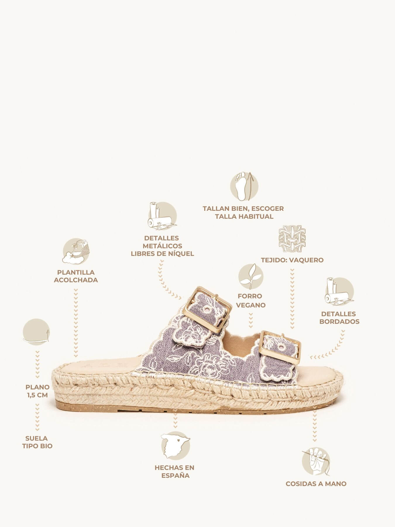 La alpargata bio Girasol, es un modelo ideal para tu día a día. Una sandalia plana con hebillas perfecta para ir cómoda y chic con tus looks más veraniegos.