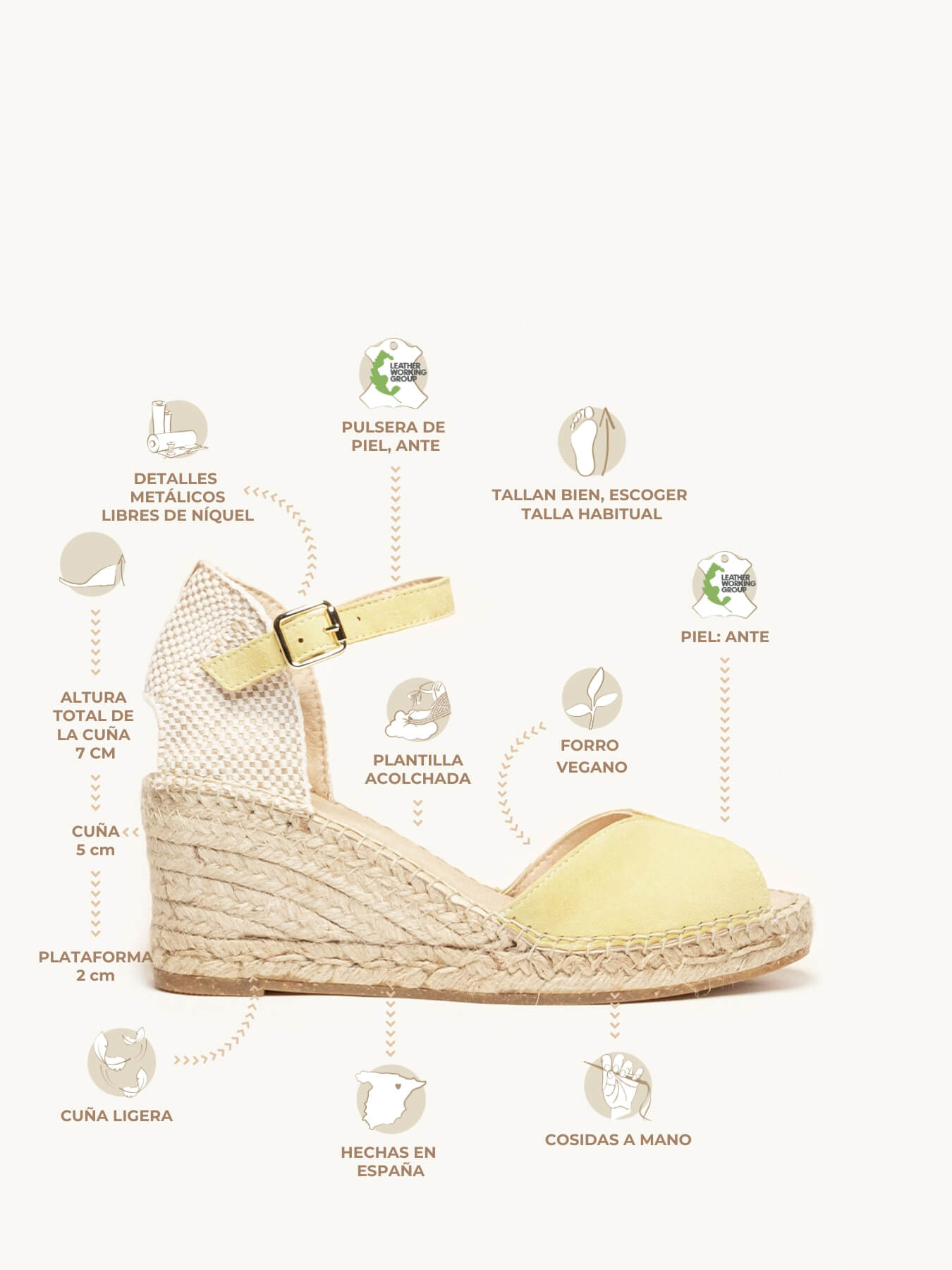 Le modèle Alelí est l’un de nos préférés. Notre sandale avec bracelet et encolure ronde est un modèle très polyvalent, idéal pour un usage quotidien et aussi pour donner une touche très chic aux looks les plus spéciaux. Les espadrilles compensées et bracelet tiennent très bien à la cheville, vous serez super à l’aise tout au long de la journée.