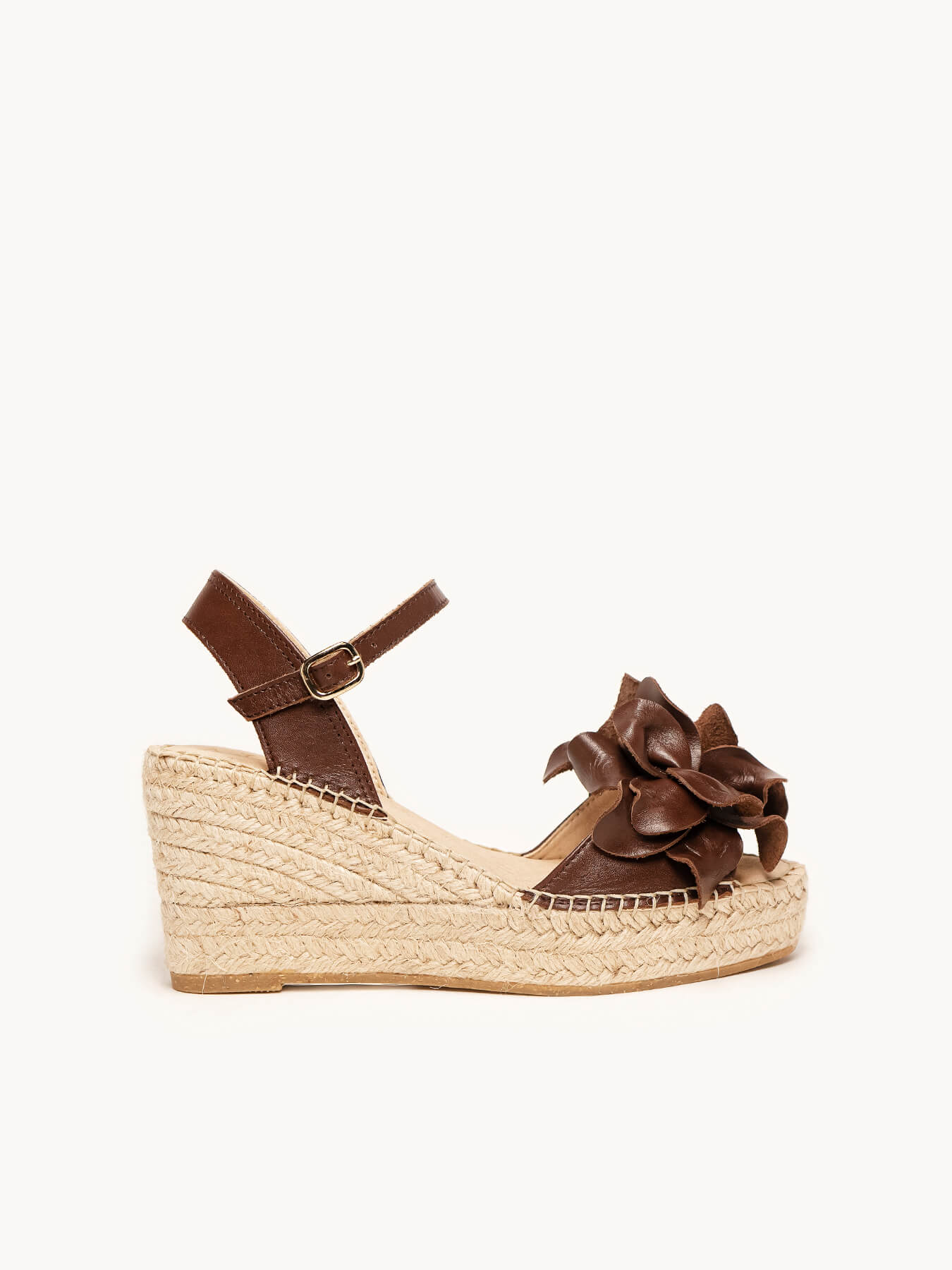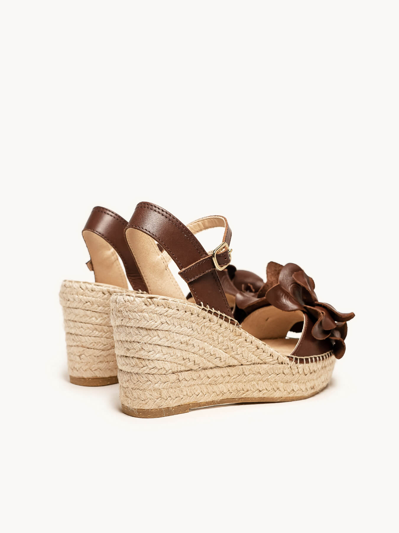 - Cuña de trenza de Yute natural con suela de goma reciclada, mezclada con fibras naturales.