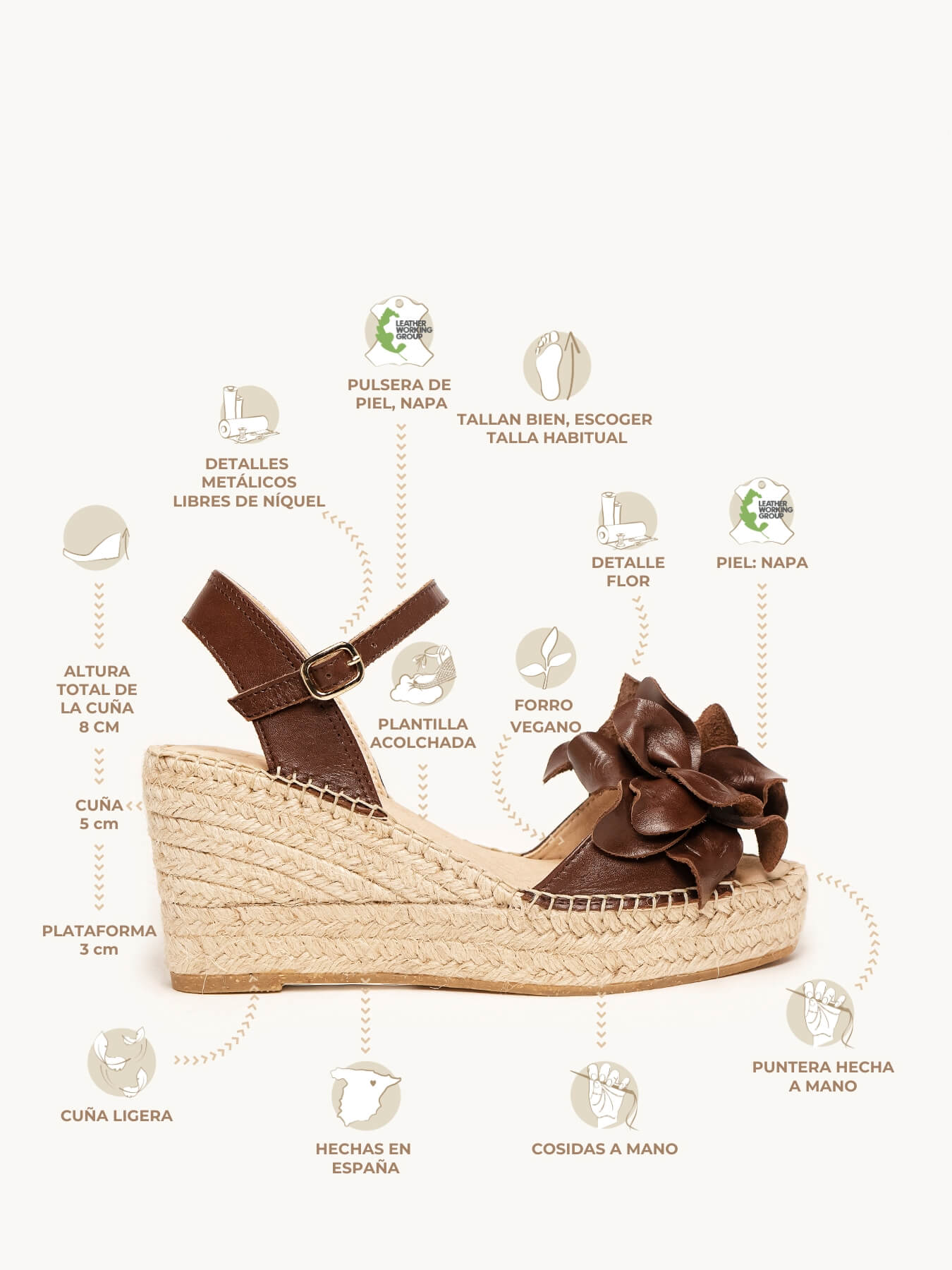 - La Napa de la alpargata Alelí está certificado por el Leather Working Group (una organización que promueve prácticas ambientales sostenibles)