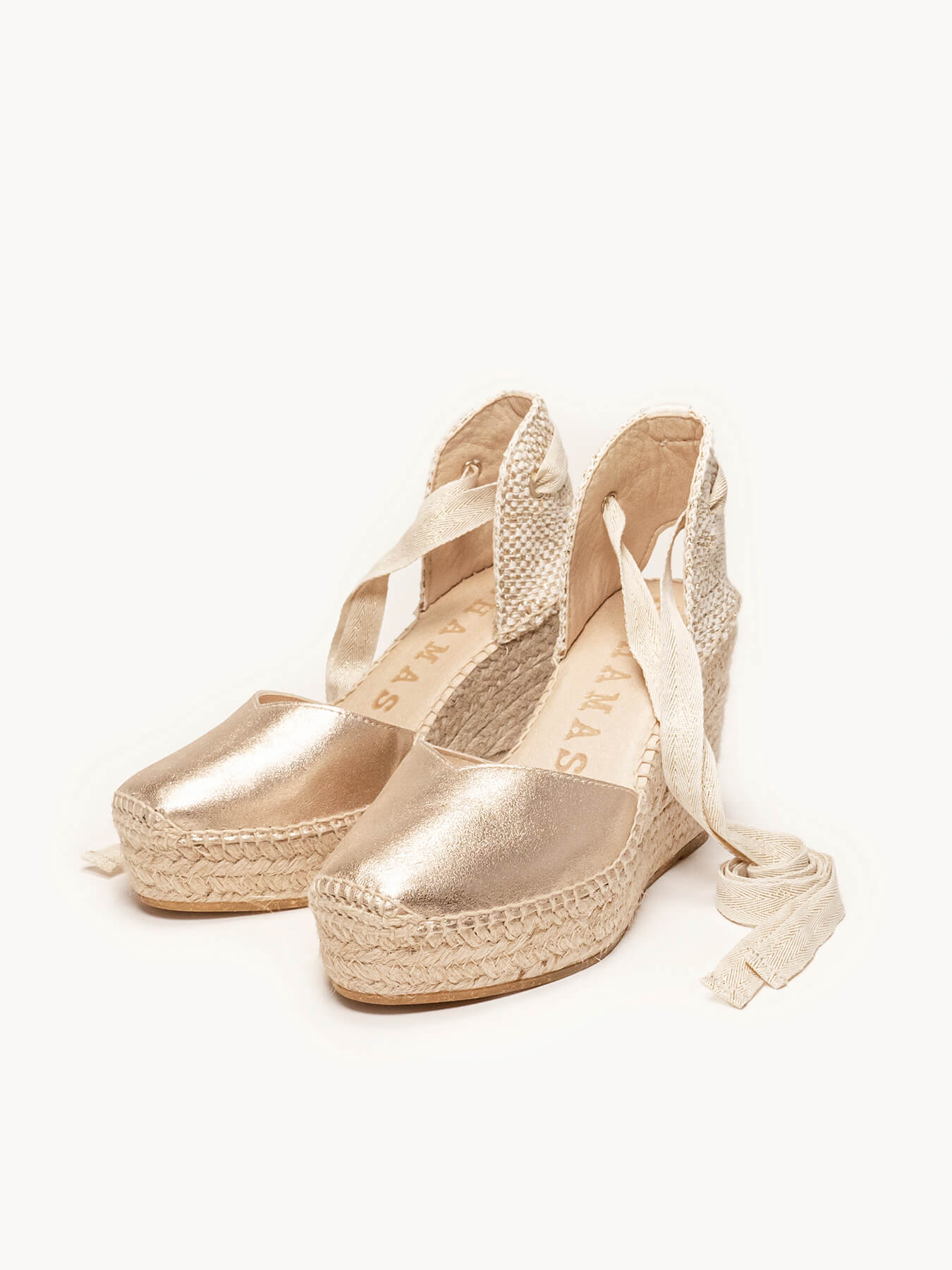 La alpargata de cuña alta Romero, es nuestro modelo más icónico. Una alpargata valenciana de escote corazón con cintas que podrás llevar con tus looks especiales y también con los del día a día. Podrás darle un toque especial porque las cintas se pueden cambiar.