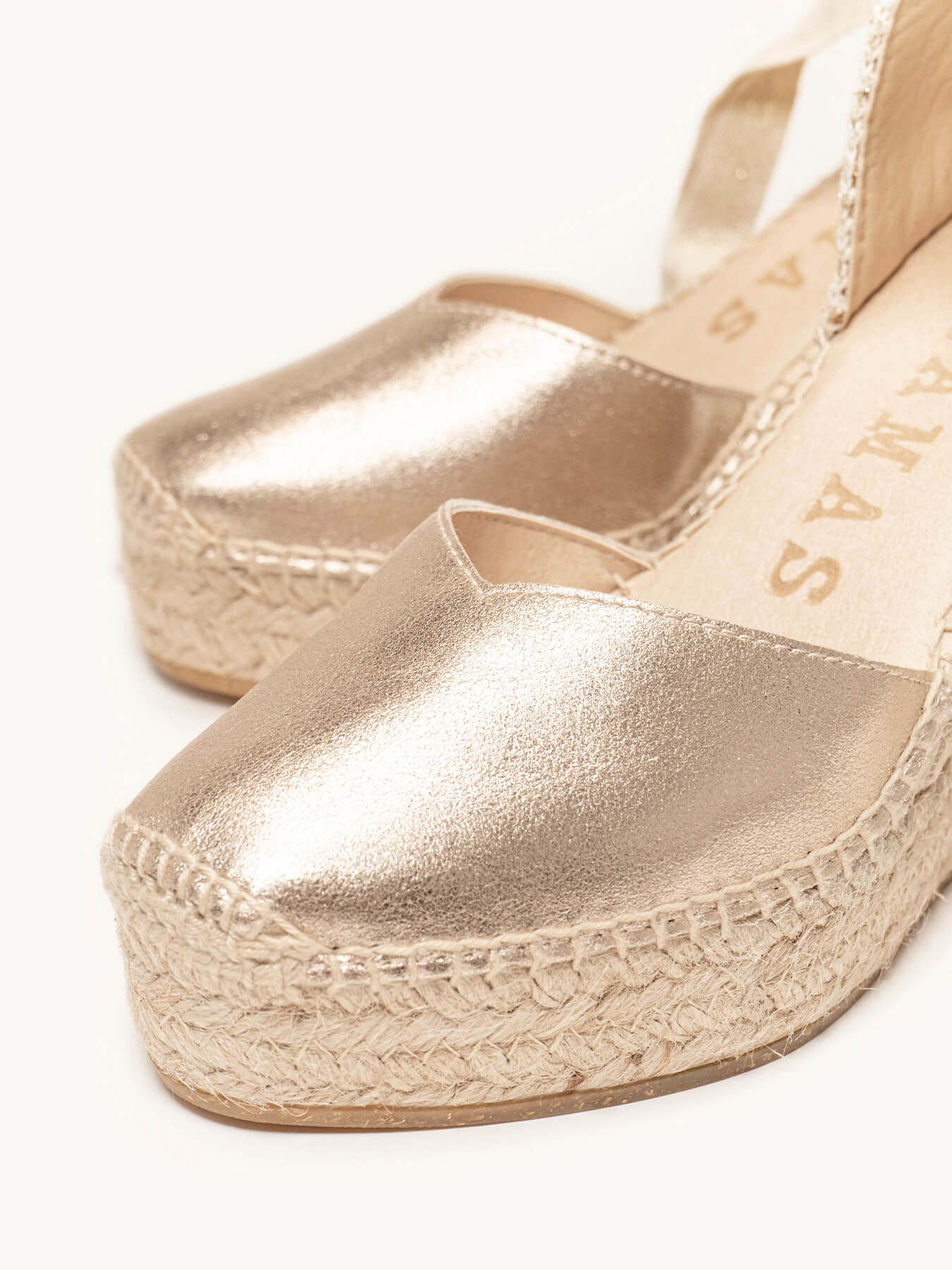 - Cuña de trenza de Yute natural con suela de goma reciclada mezclada con fibras naturales.