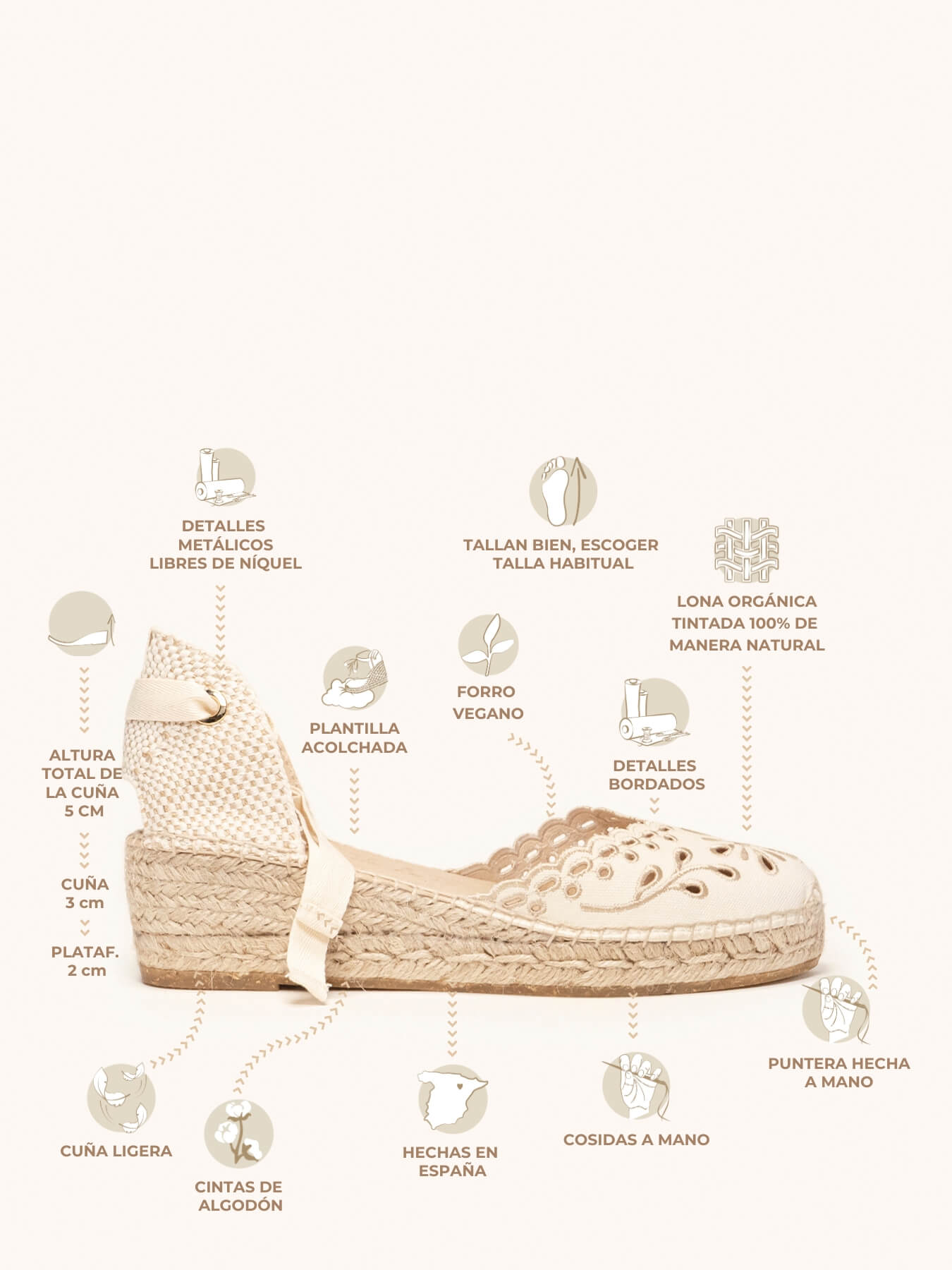 Toutes nos espadrilles sont dotées d’une semelle intérieure rembourrée.