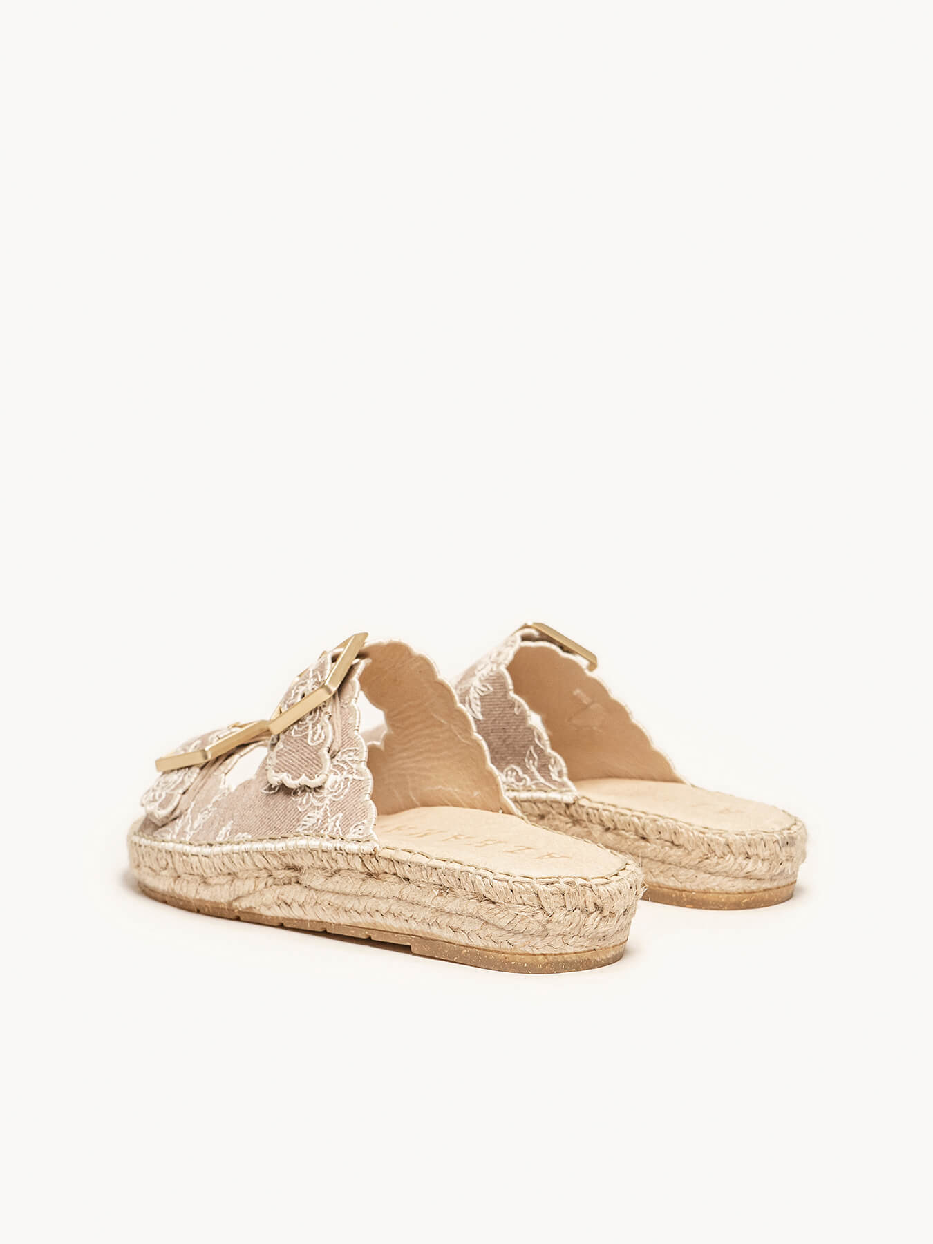 - Cuña de trenza de Yute natural con suela de goma reciclada mezclada con fibras naturales.