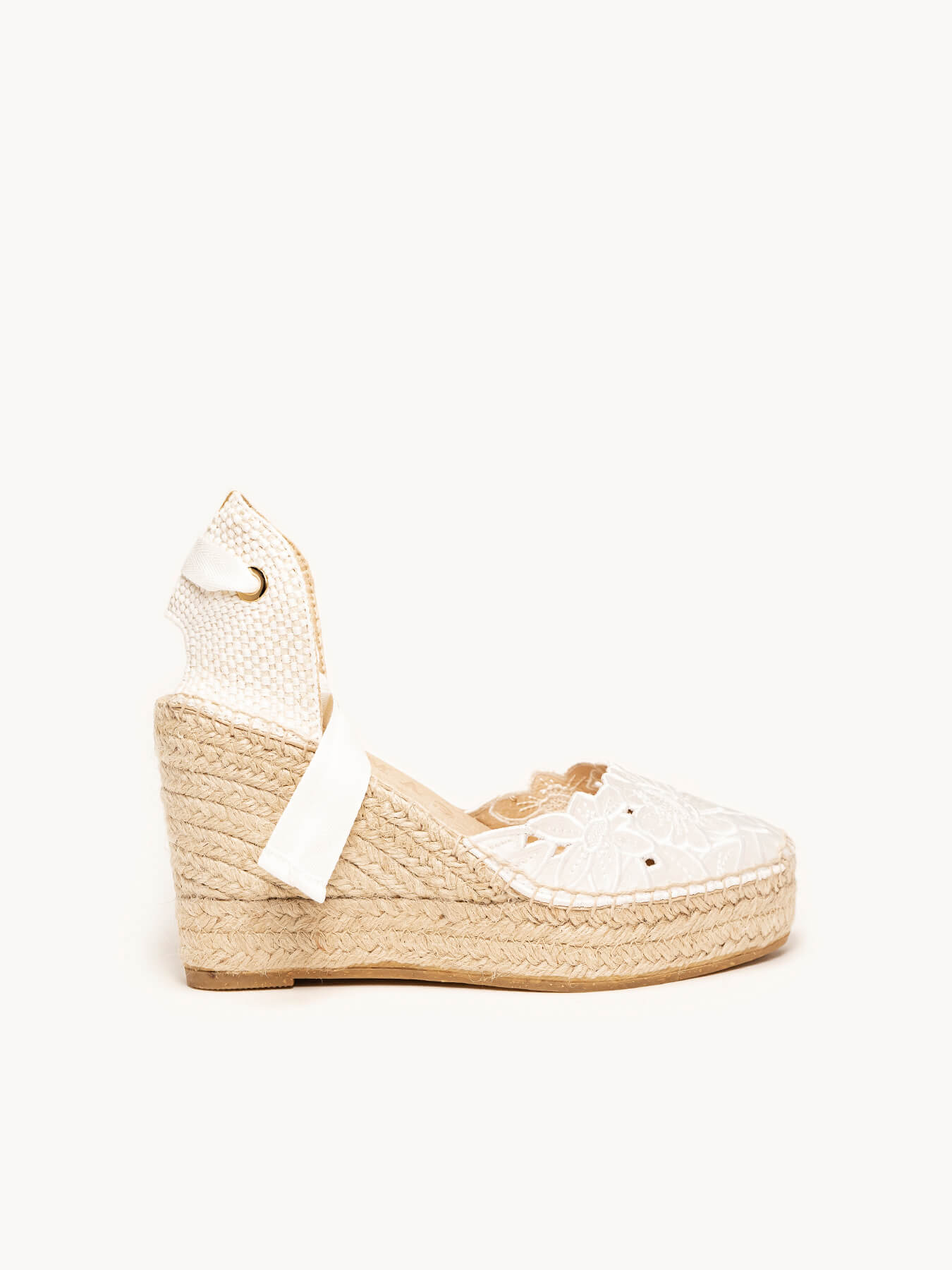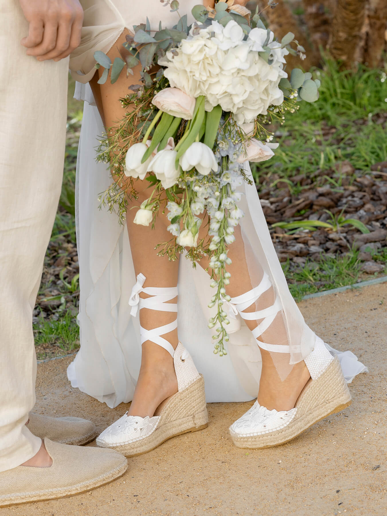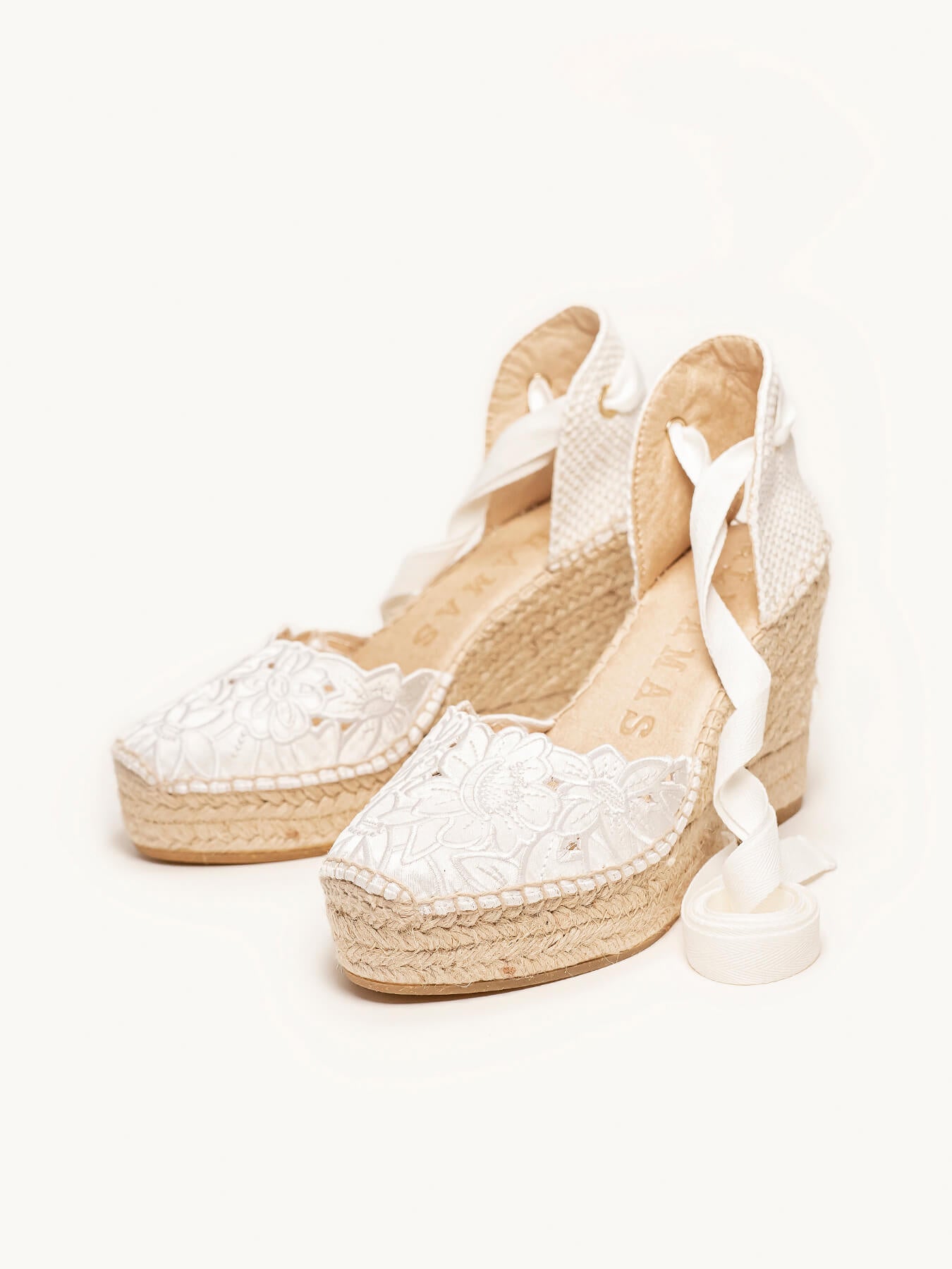 La alpargata de cuña alta Romero, es uno de nuestros modelos más especiales, perfecto para tu día. Las alpargatas de novia que podrás elegir como primera opción o como alpargatas de cambio. Conservarás la altura, sus cintas darán ese toque especial a tu vestido y llevarás las alpargatas cómodas que te permitirán disfrutar al máximo.