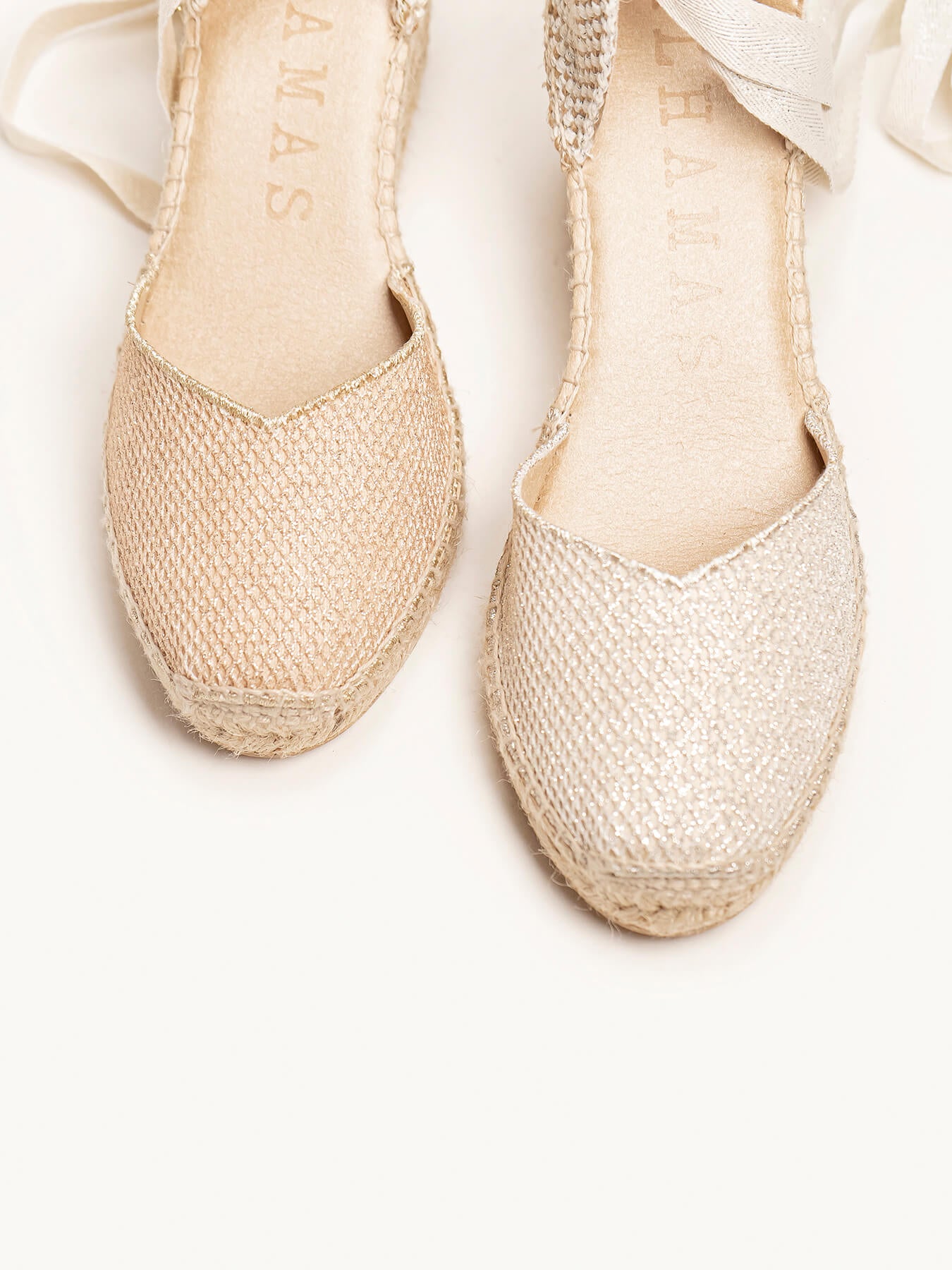 La alpargata de cuña media Romero, es uno de nuestros modelos más especiales, perfecto para tu día. Las alpargatas de novia que podrás elegir como primera opción o como alpargatas de cambio. Conservarás la altura, sus cintas darán ese toque especial a tu vestido y llevarás las alpargatas cómodas que te permitirán disfrutar al máximo.