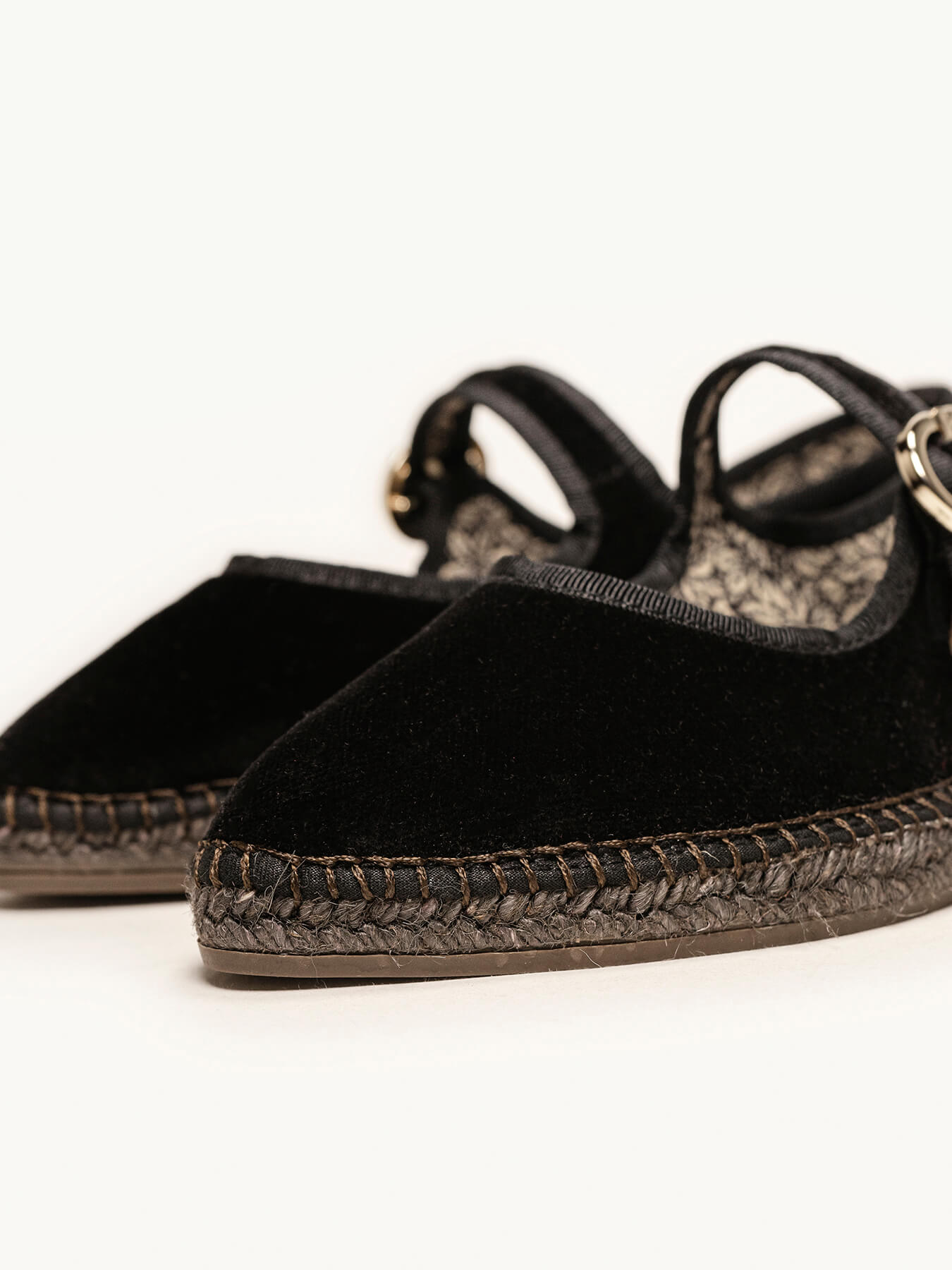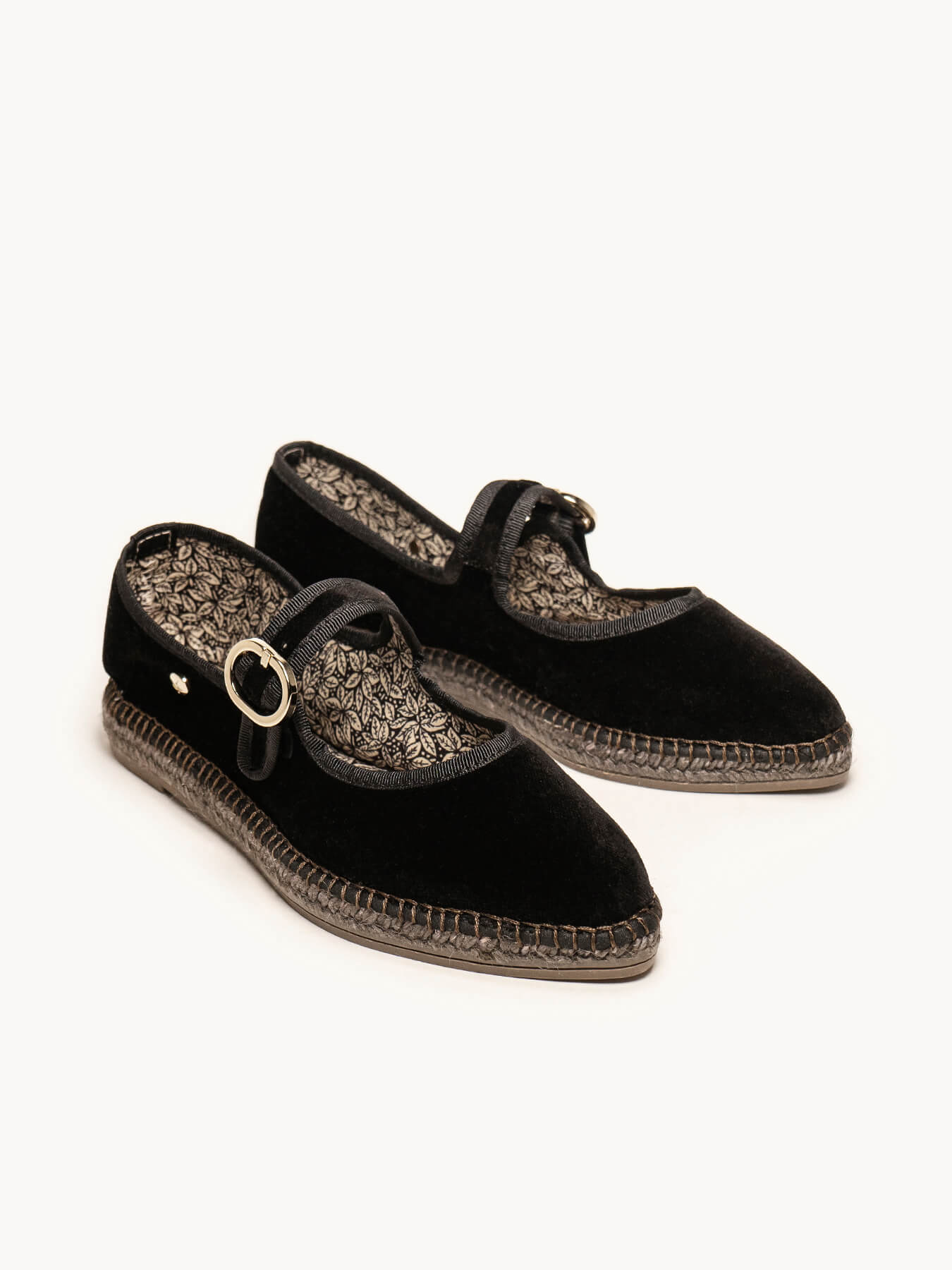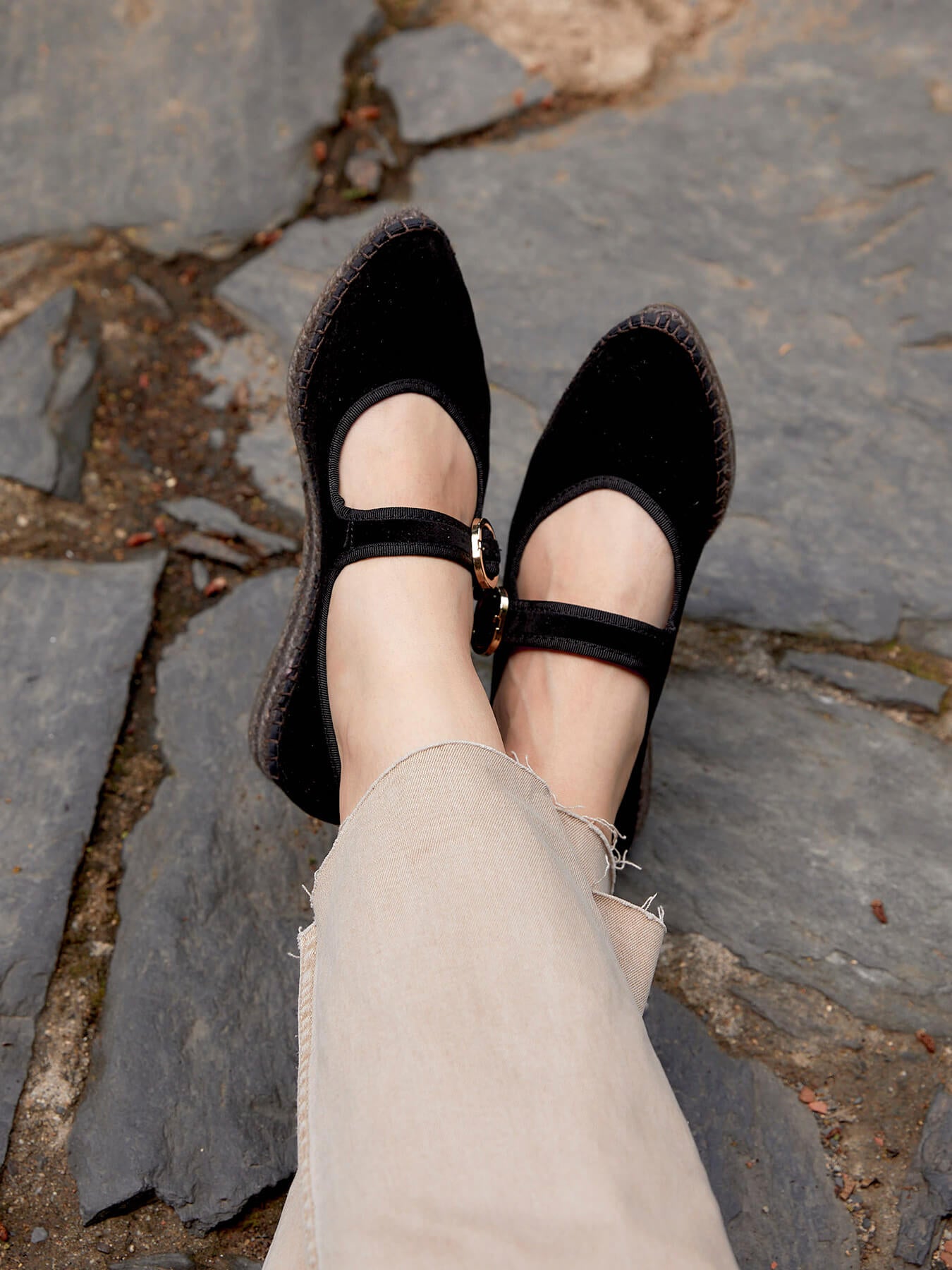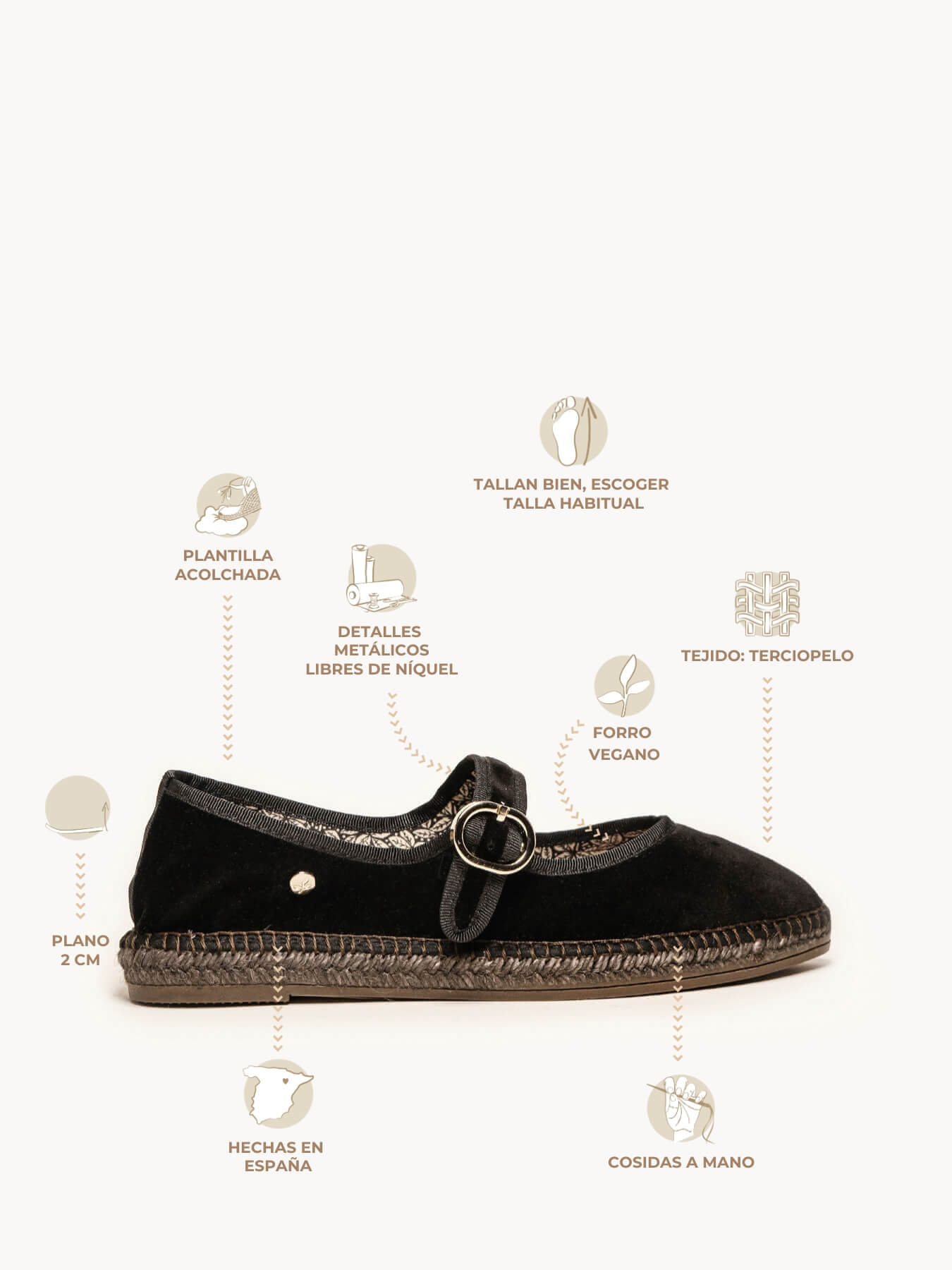 El modelo Azucena, es nuestra bailarina de terciopelo de estilo Mary Jane . La podrás llevar tanto dentro como fuera de casa. Lleva una pequeña pulsera con hebilla para sujetar bien. Son muy cómodas y gracias a la forma de la punta, verás tu pie super estilizado.