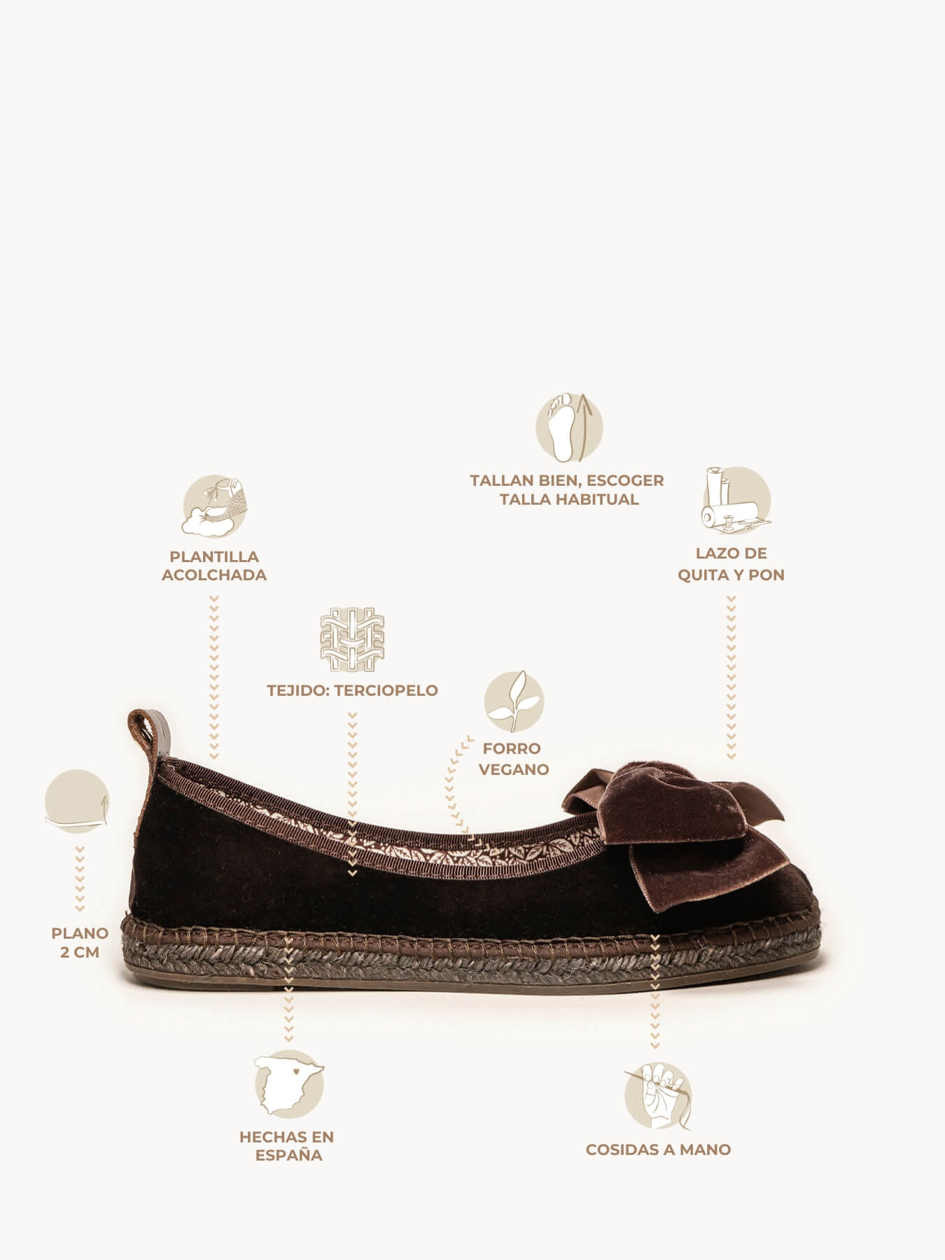 El modelo Begonia, es nuestra bailarina de terciopelo. La podrás llevar tanto dentro como fuera de casa. Al ser planas son super ligeras y cómodas. Gracias a la forma cuadrada de la punta, verás tu pie super estilizado.