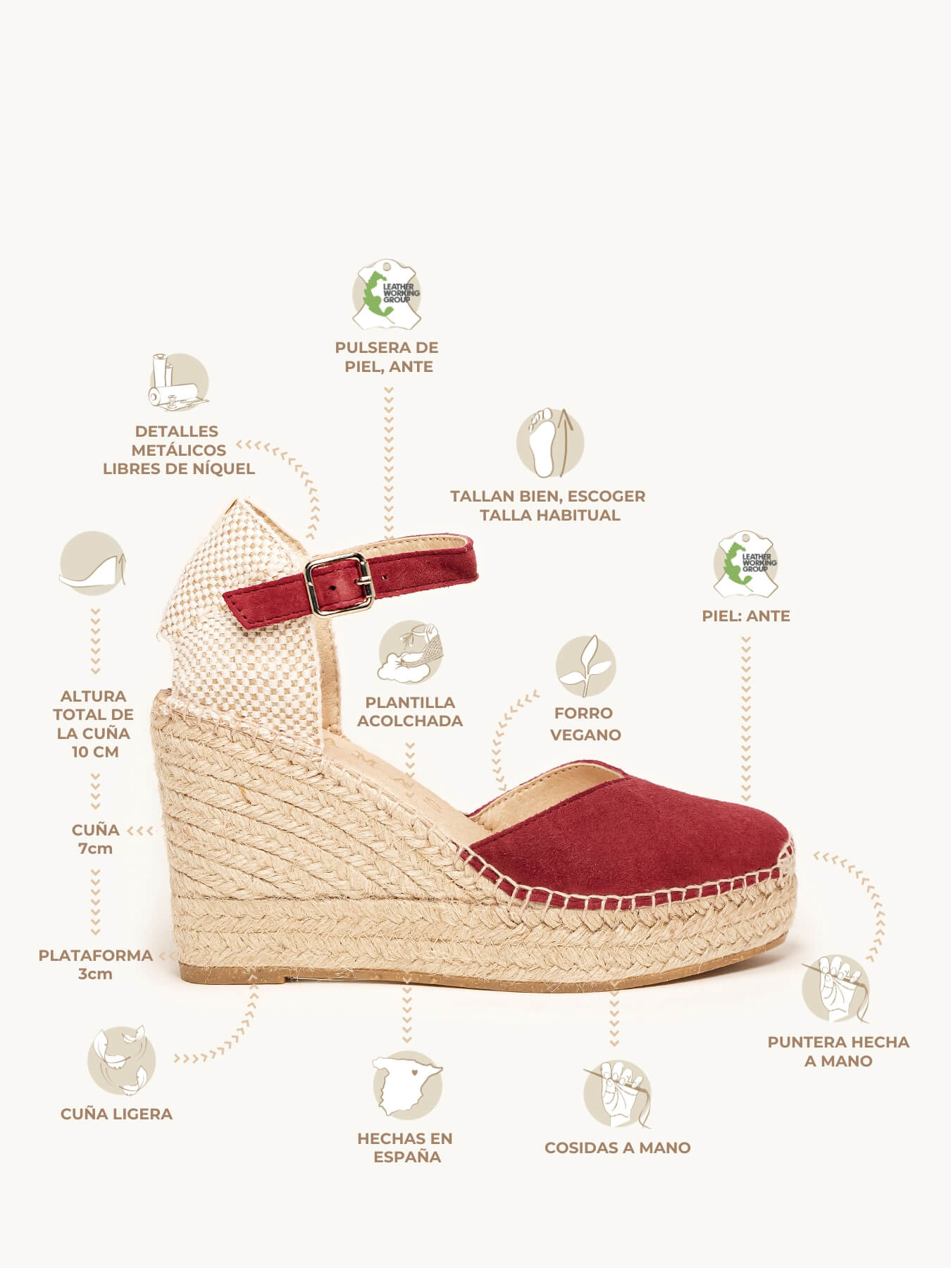 • Alpargata Cuña Alta: 10 cm totales (3 de plataforma + 7 de cuña).