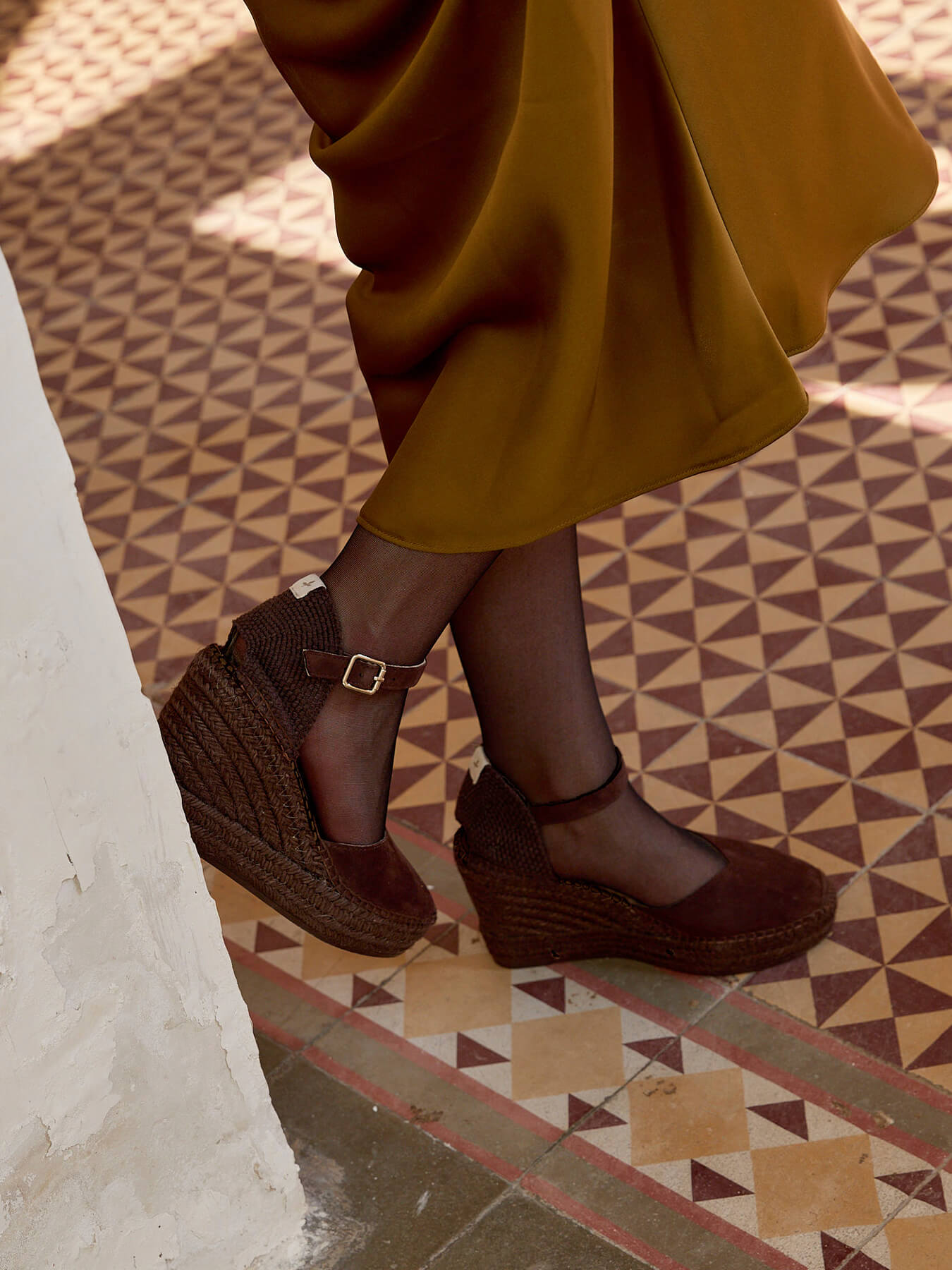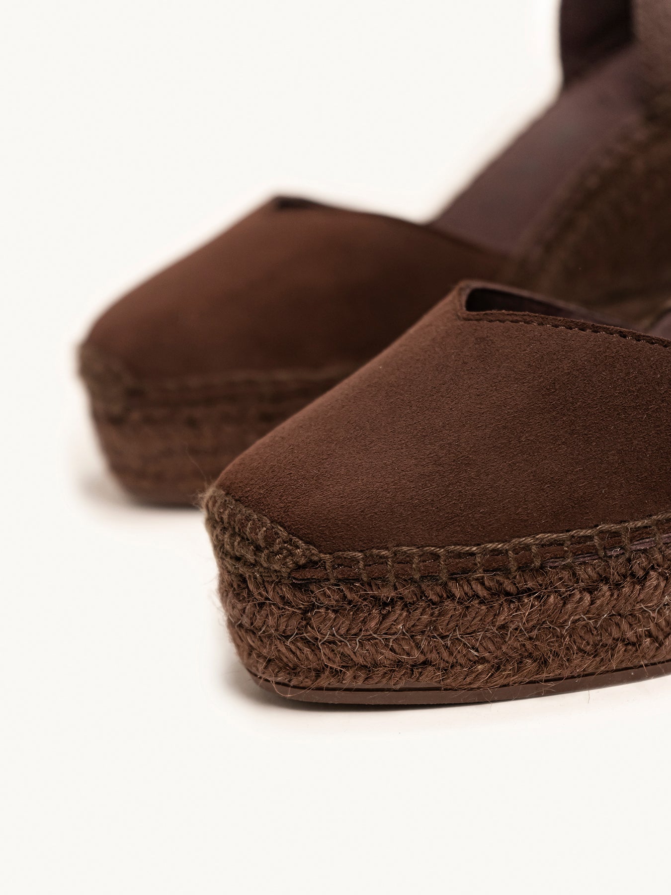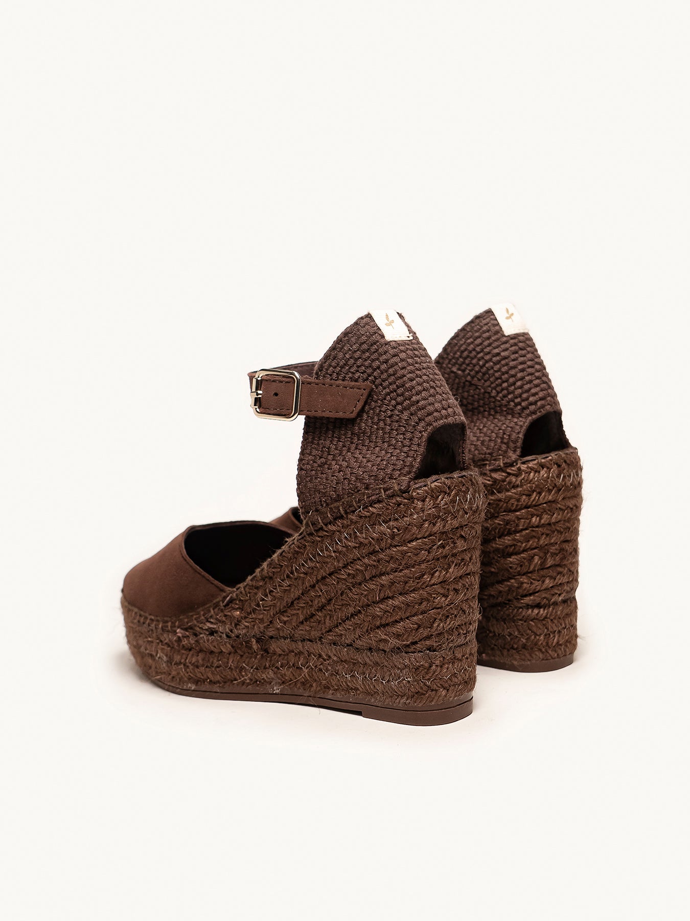 - Cuña de trenza de Yute tintado con suela de goma reciclada, mezclada con fibras naturales.