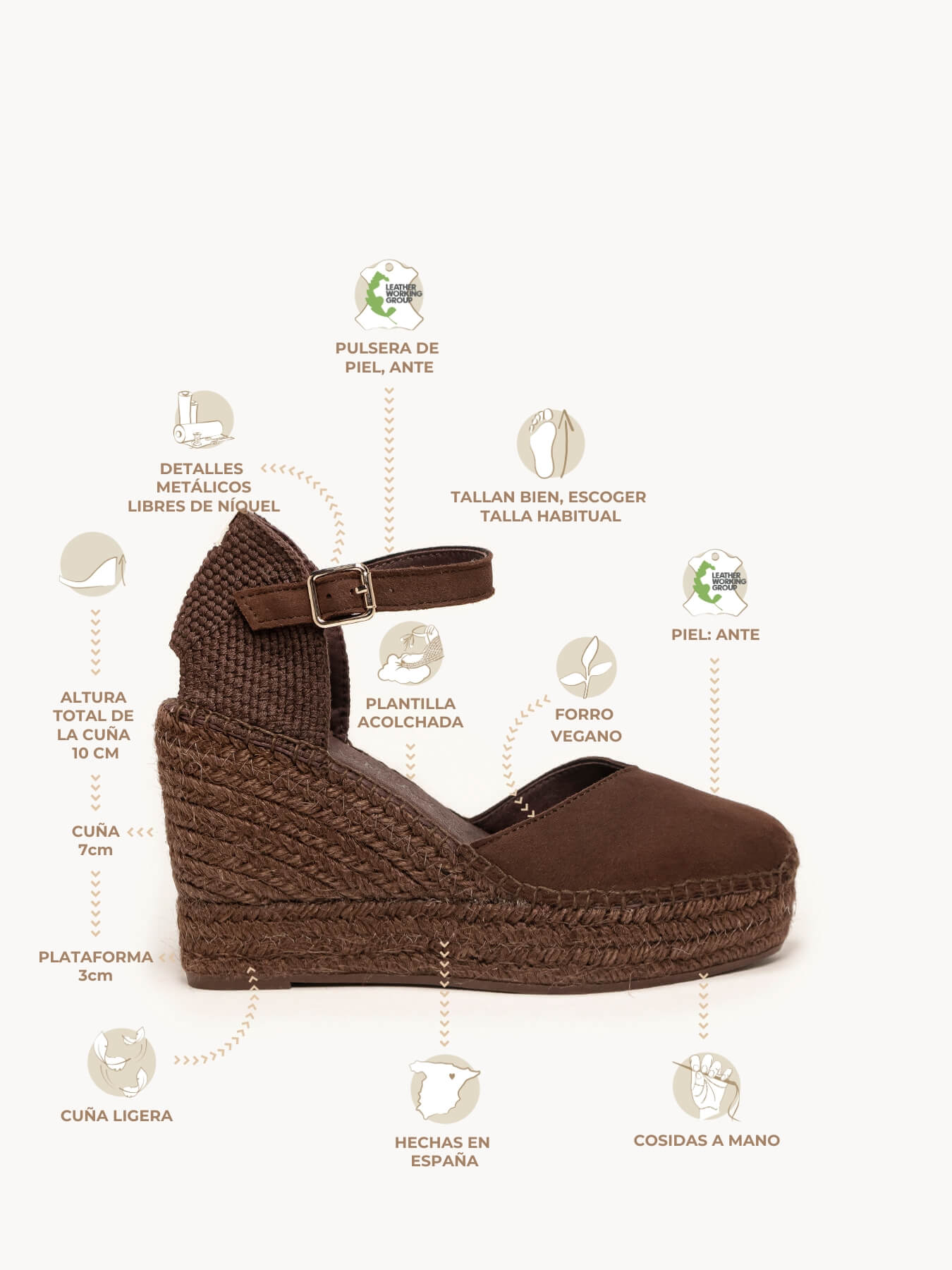 - El Ante de la alpargata Jara está certificado por el Leather Working Group (una organización que promueve prácticas ambientales sostenibles)