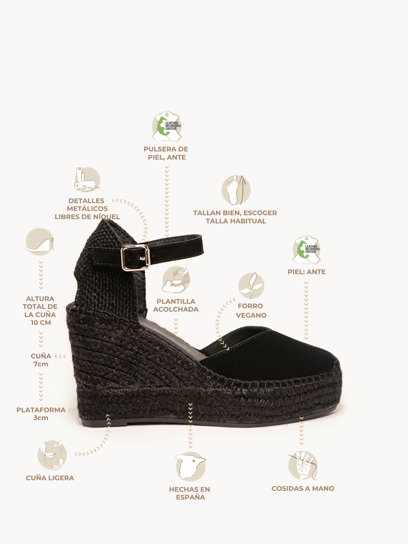 Alpargata Cuña Alta: 10 cm totales (3 de plataforma + 7 de cuña).
