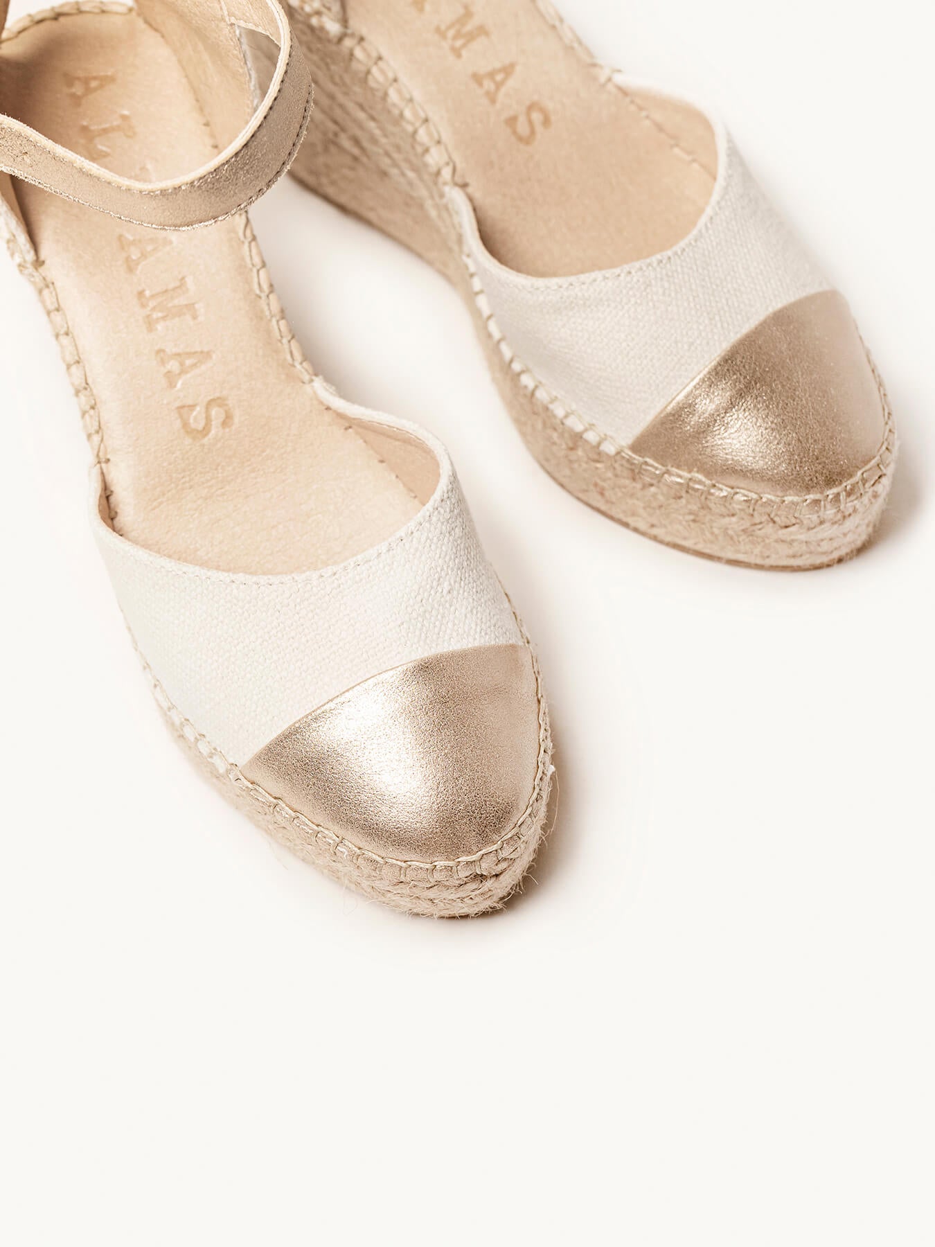 - Iniciales en la cuña, podrás elegir las dos iniciales que prefieras y las colocaremos en la cuña de tus alpargatas de novia.