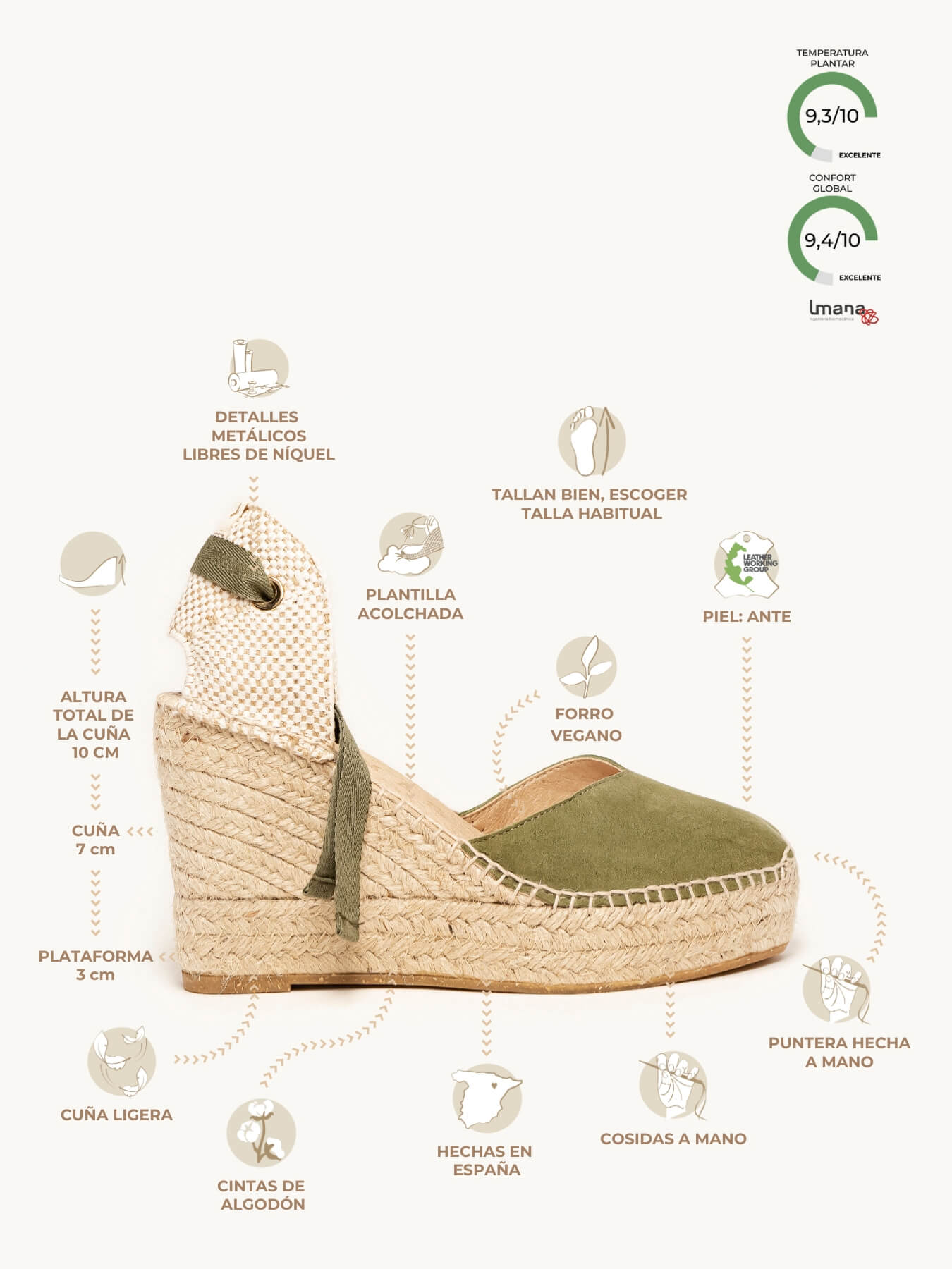 • Alpargata Cuña Alta: 10 cm totales (3 de plataforma + 7 de cuña).
