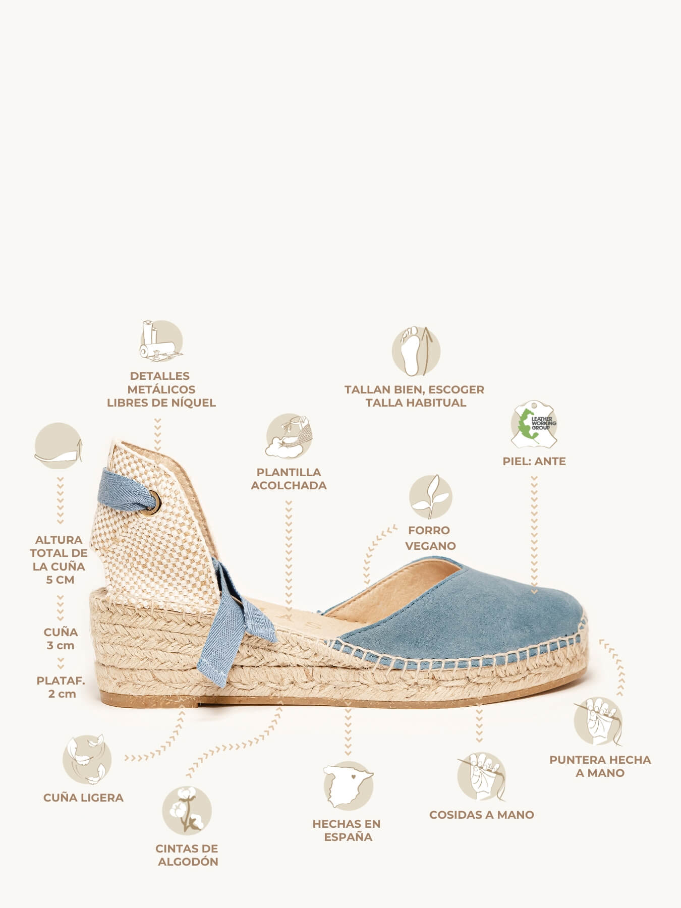• Alpargata Cuña Baja: 5 cm totales (2 de plataforma + 3 de cuña).