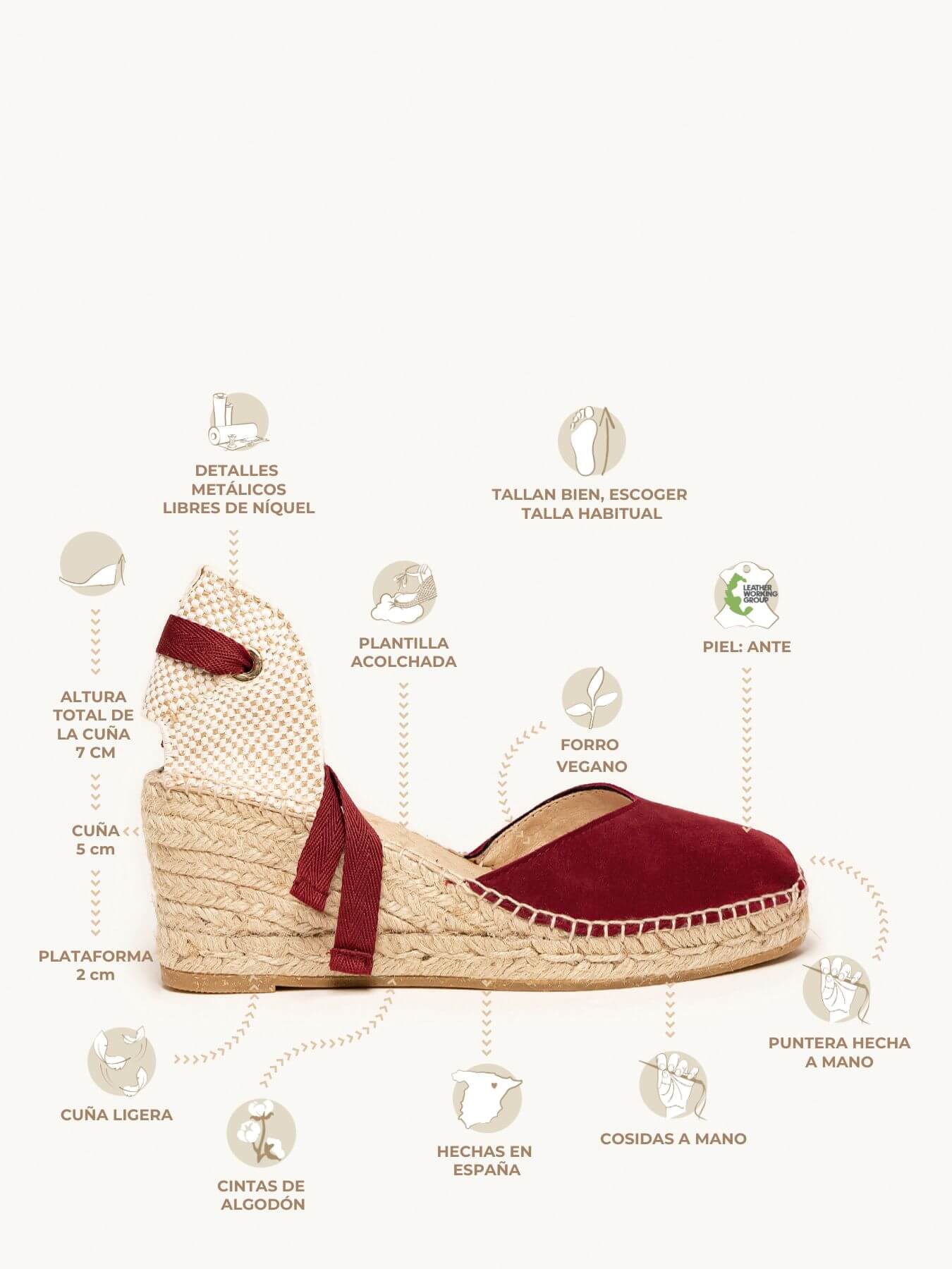 - El Ante de la alpargata Romero está certificado por el Leather Working Group (una organización que promueve prácticas ambientales sostenibles)