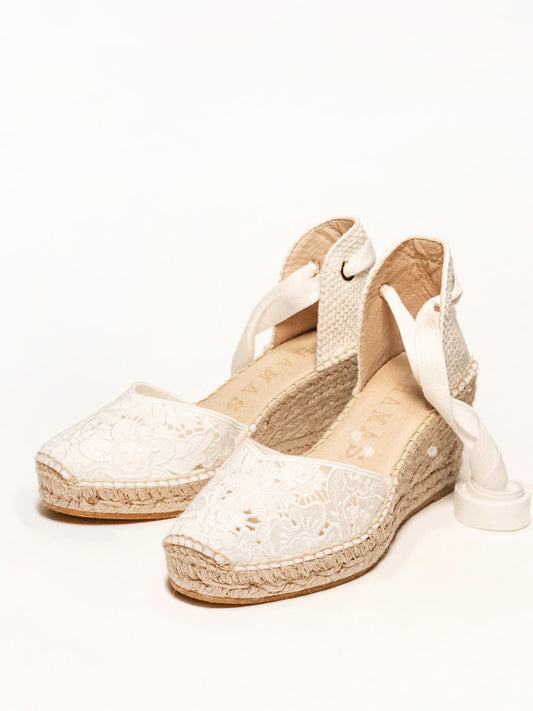 Nas alpargatas de noiva com fitas, pode encontrar: alpargatas de noiva com fitas de cunha alta e alpargatas de noiva com fitas de cunha média e claro que temos acessórios como fitas de algodão e tule para que possa combinar e dar um toque diferencial às suas alpargatas Alhamas e usá-las durante o seu dia mais especial apostando em alpargatas originais, alpargatas feitas à mão e alpargatas confortáveis.