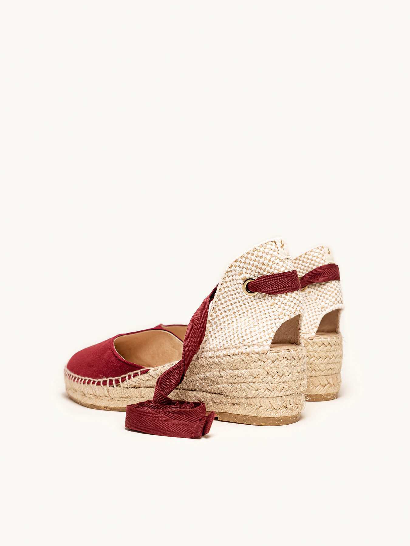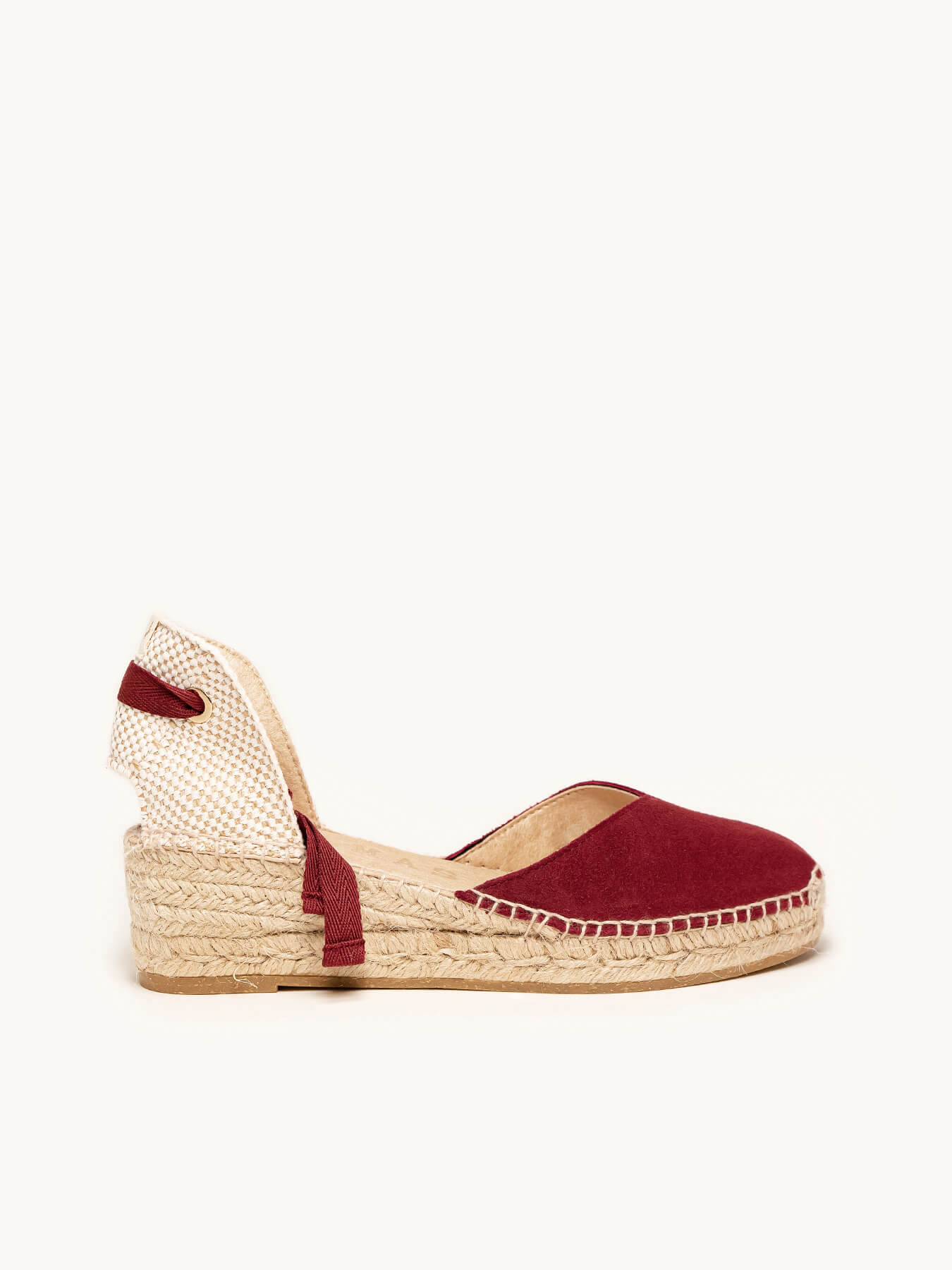 - Cuña de trenza de Yute natural con suela de goma reciclada mezclada con fibras naturales.