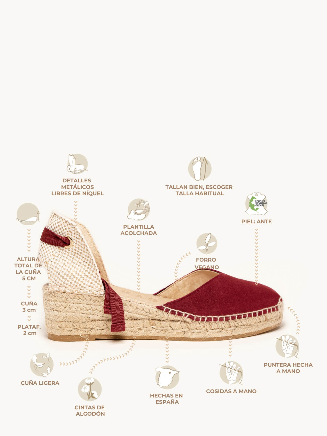 - El Ante de la alpargata Romero está certificado por el Leather Working Group (una organización que promueve prácticas ambientales sostenibles)