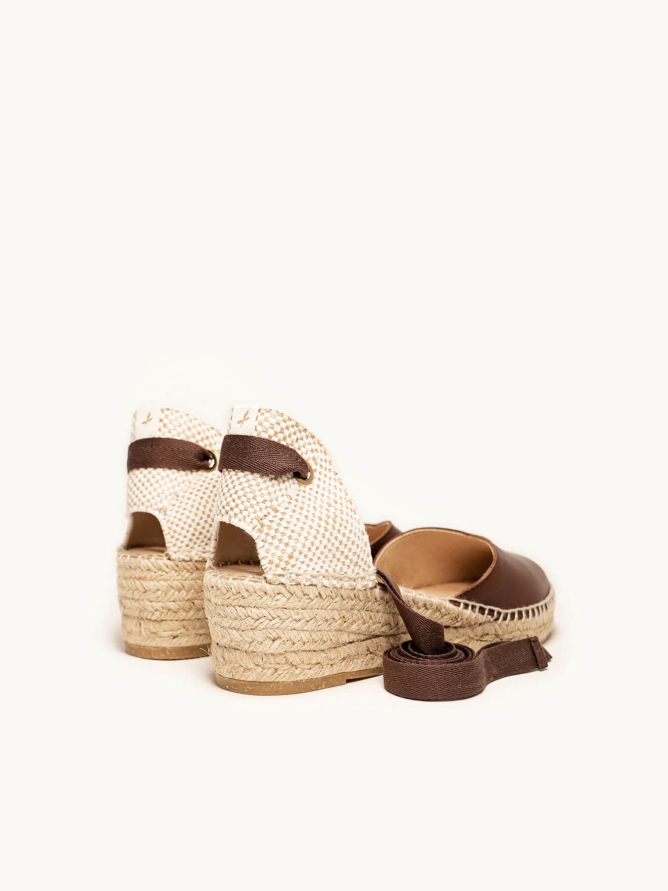 - Cuña de trenza de Yute natural con suela de goma reciclada mezclada con fibras naturales.