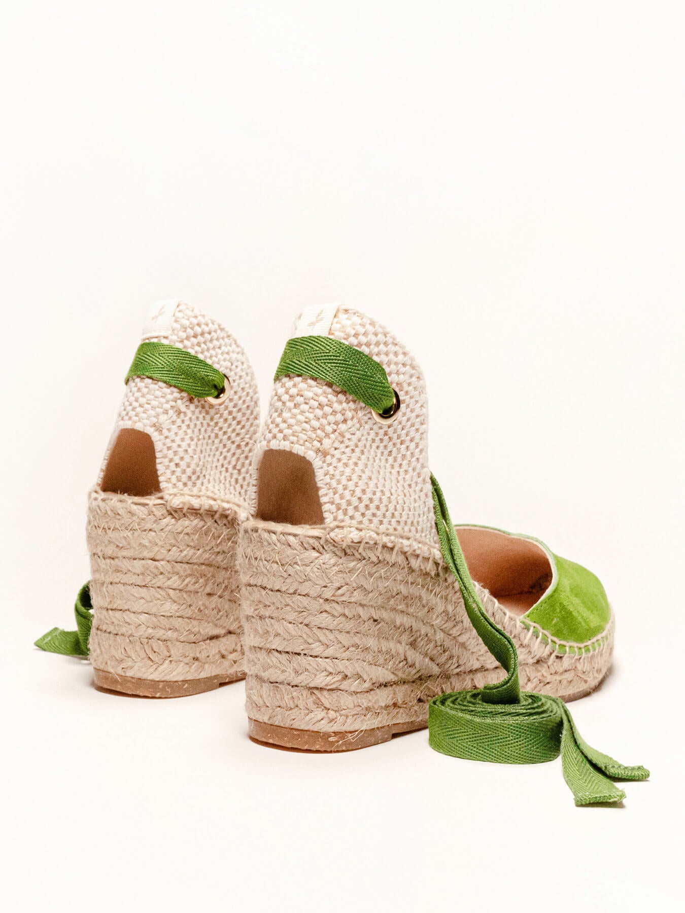 A espadrille de cunha média Romero, é o nosso modelo mais icónico. Uma alpargata valenciana com decote em coração e fitas que pode usar com os seus looks especiais e também com os seus looks do dia a dia. Poderá dar-lhe um toque especial porque as fitas podem ser mudadas.