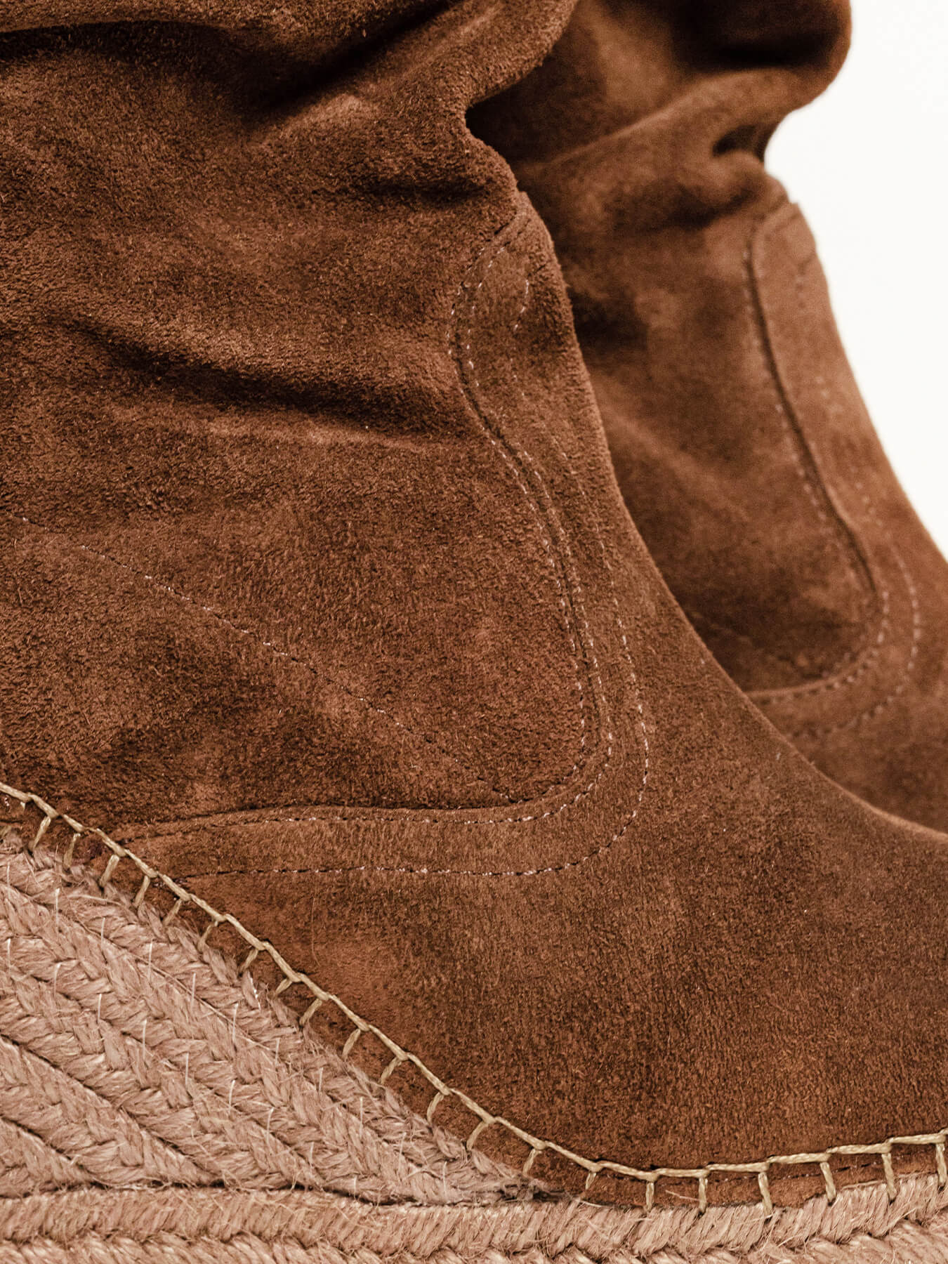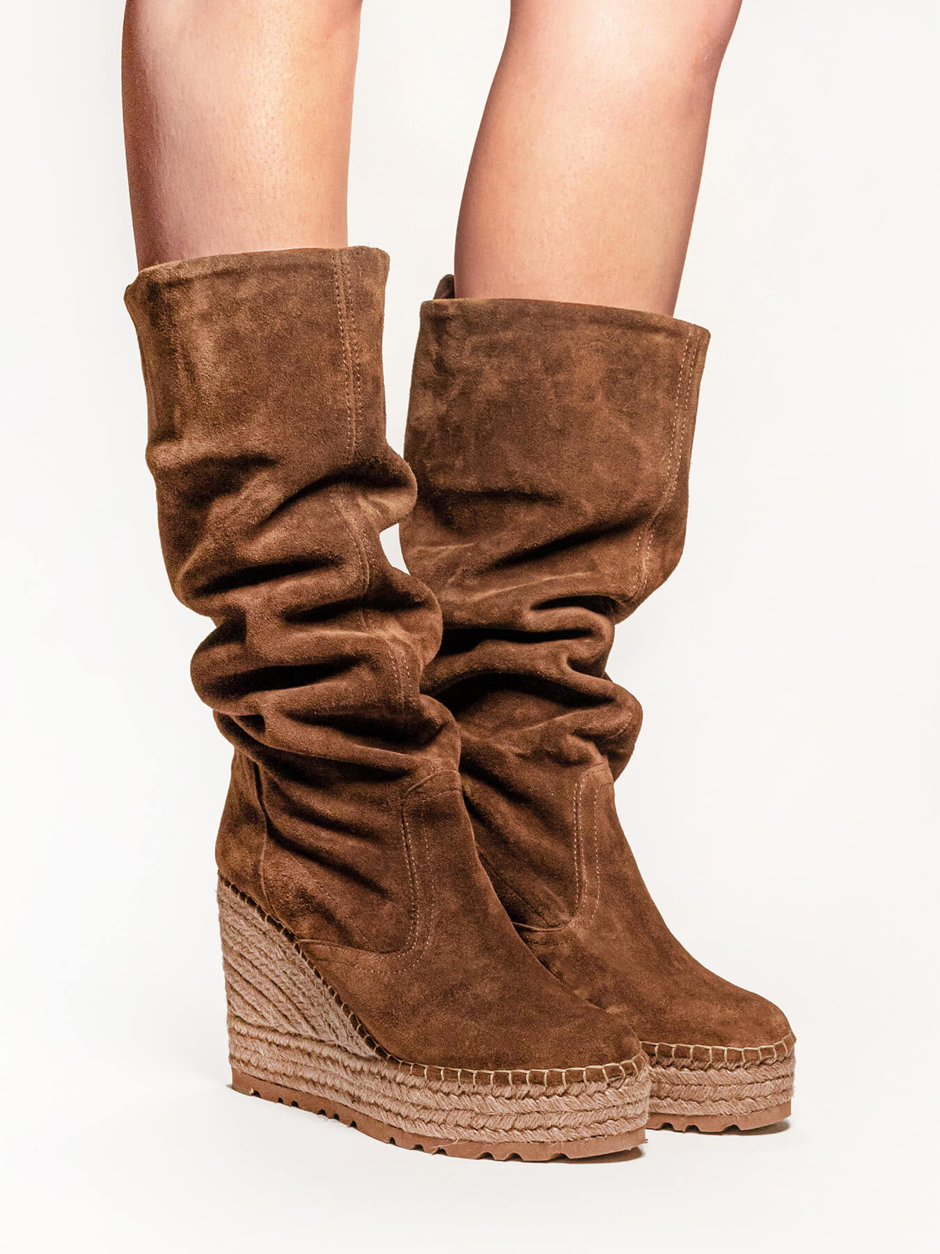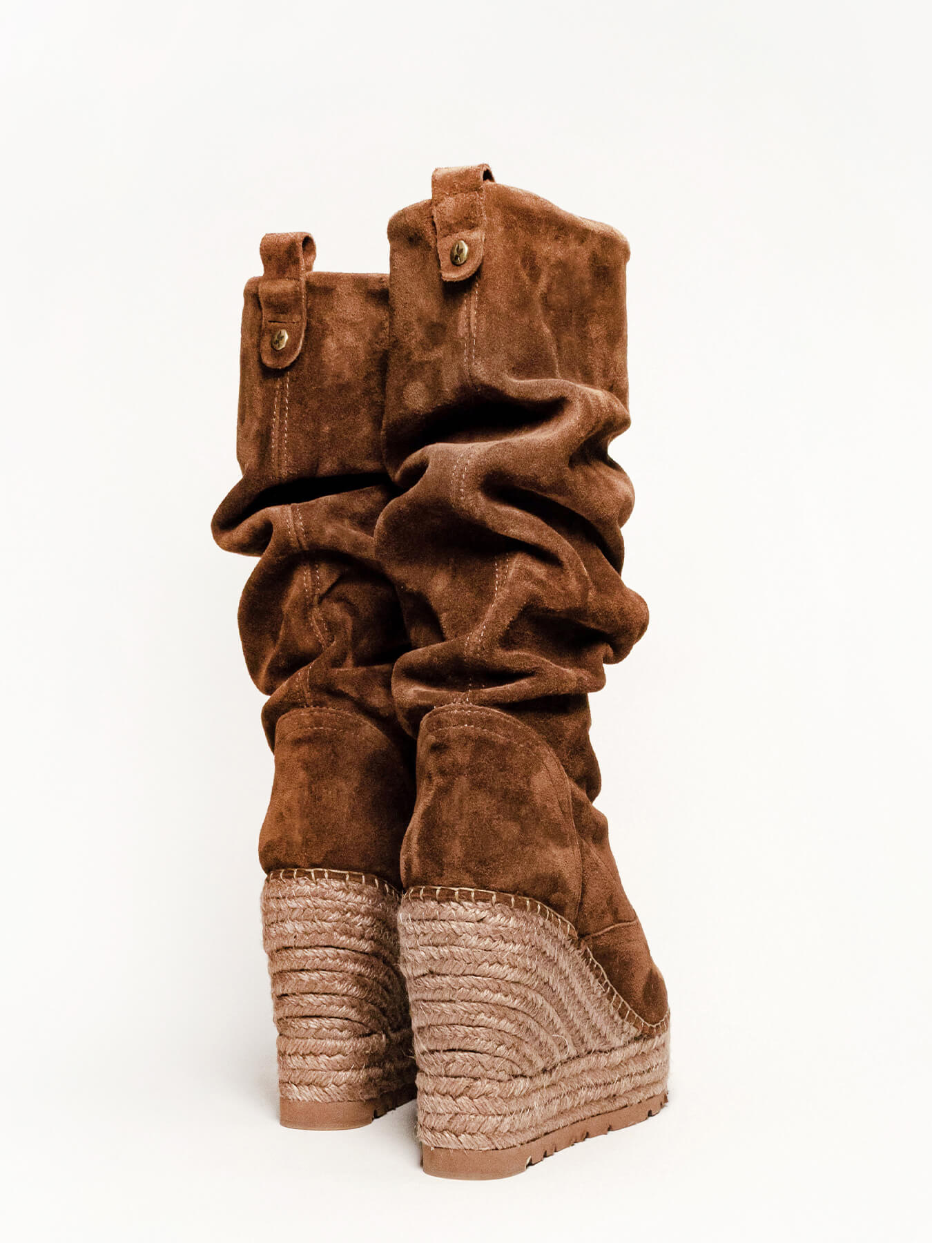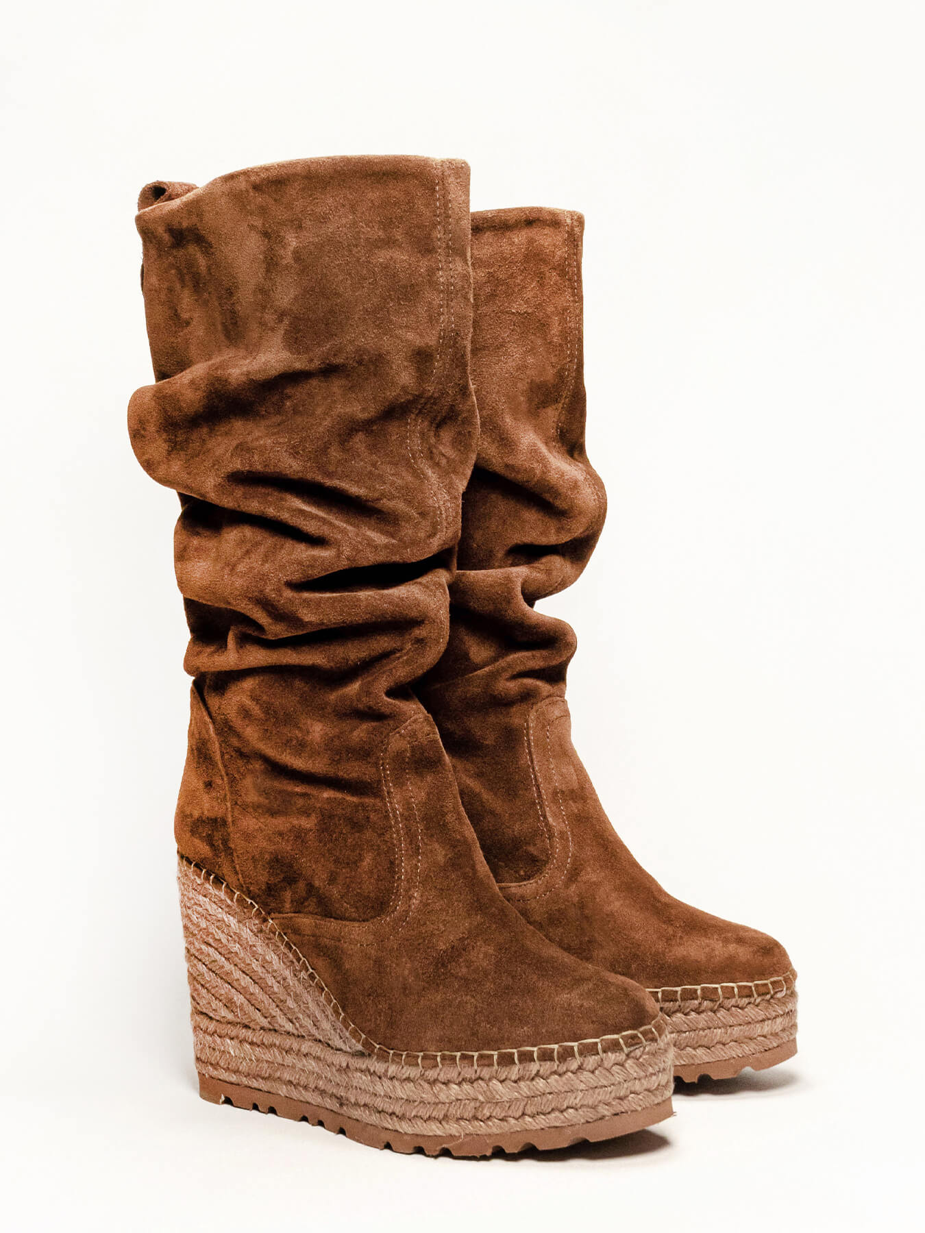 O modelo Olivo é a bota estilo 'Boho', uma bota de mulher que pode ser usada com o cano esticado e amassado. Esta bota de cunha de inverno adapta-se perfeitamente ao seu pé para que se sinta muito confortável.