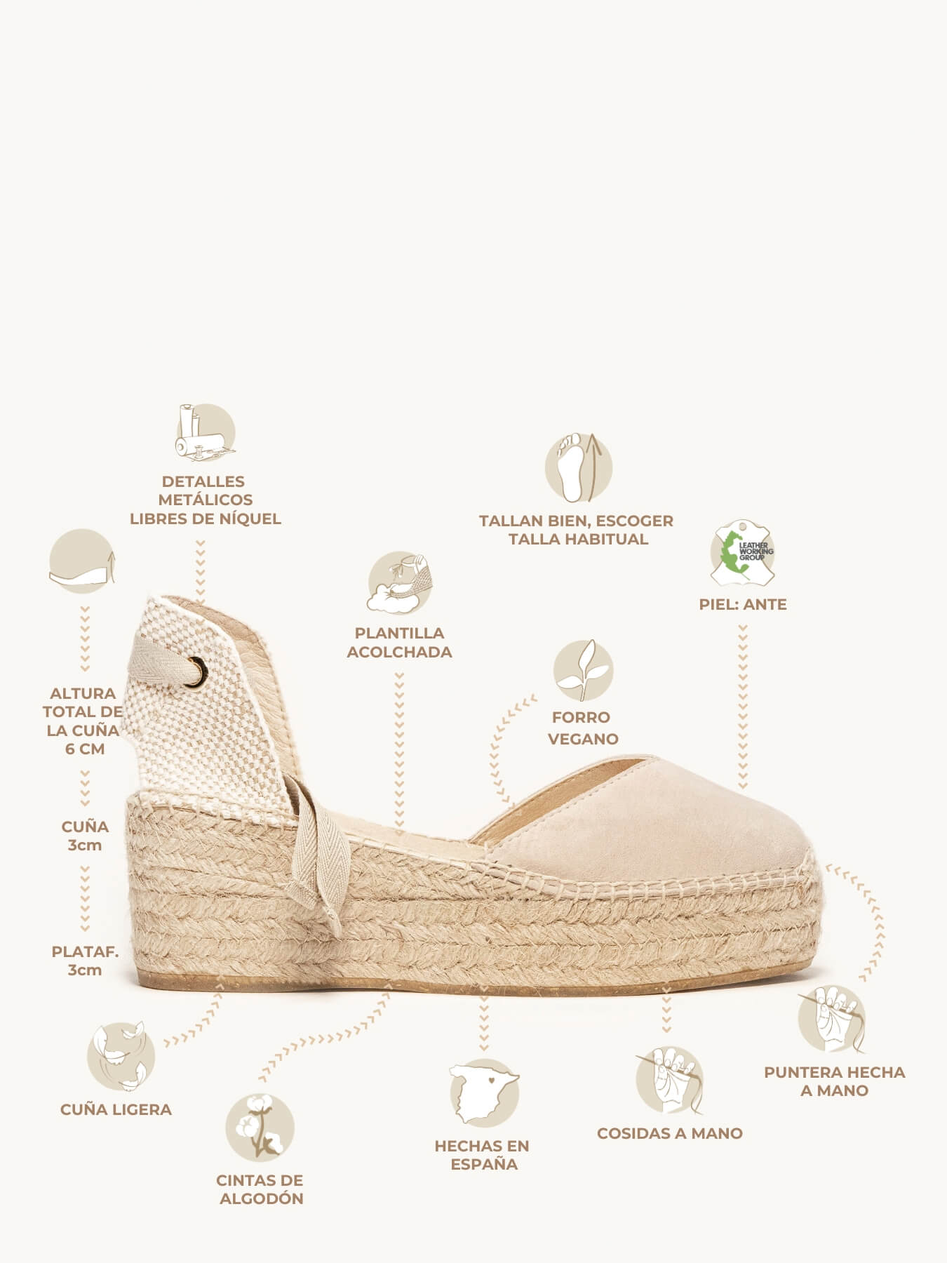 - A camurça de la alpargata Romero é certificada pelo Leather Working Group (uma organização que promove práticas ambientais sustentáveis)