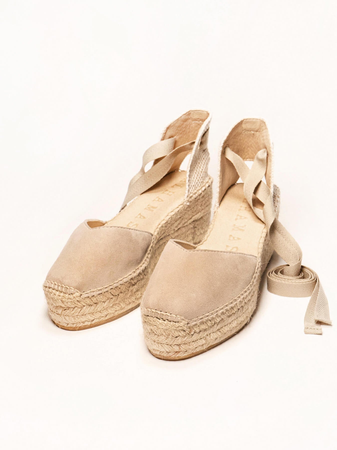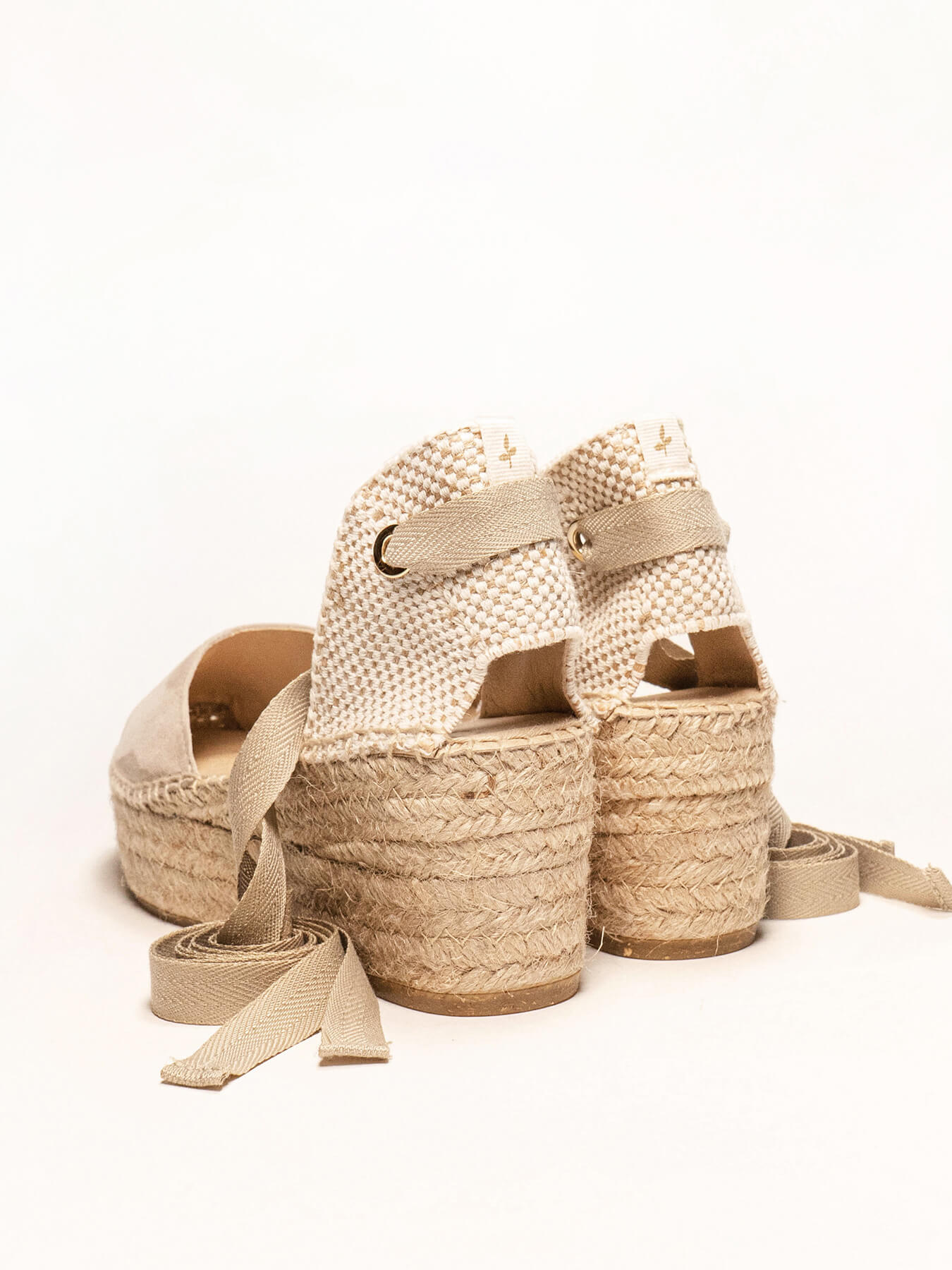 A alpargata de plataforma Romero, é o nosso modelo mais icónico. Uma alpargata valenciana com decote em coração e fitas que pode usar com os seus looks especiais e também com os seus looks do dia a dia. Poderá dar-lhe um toque especial porque as fitas podem ser mudadas.