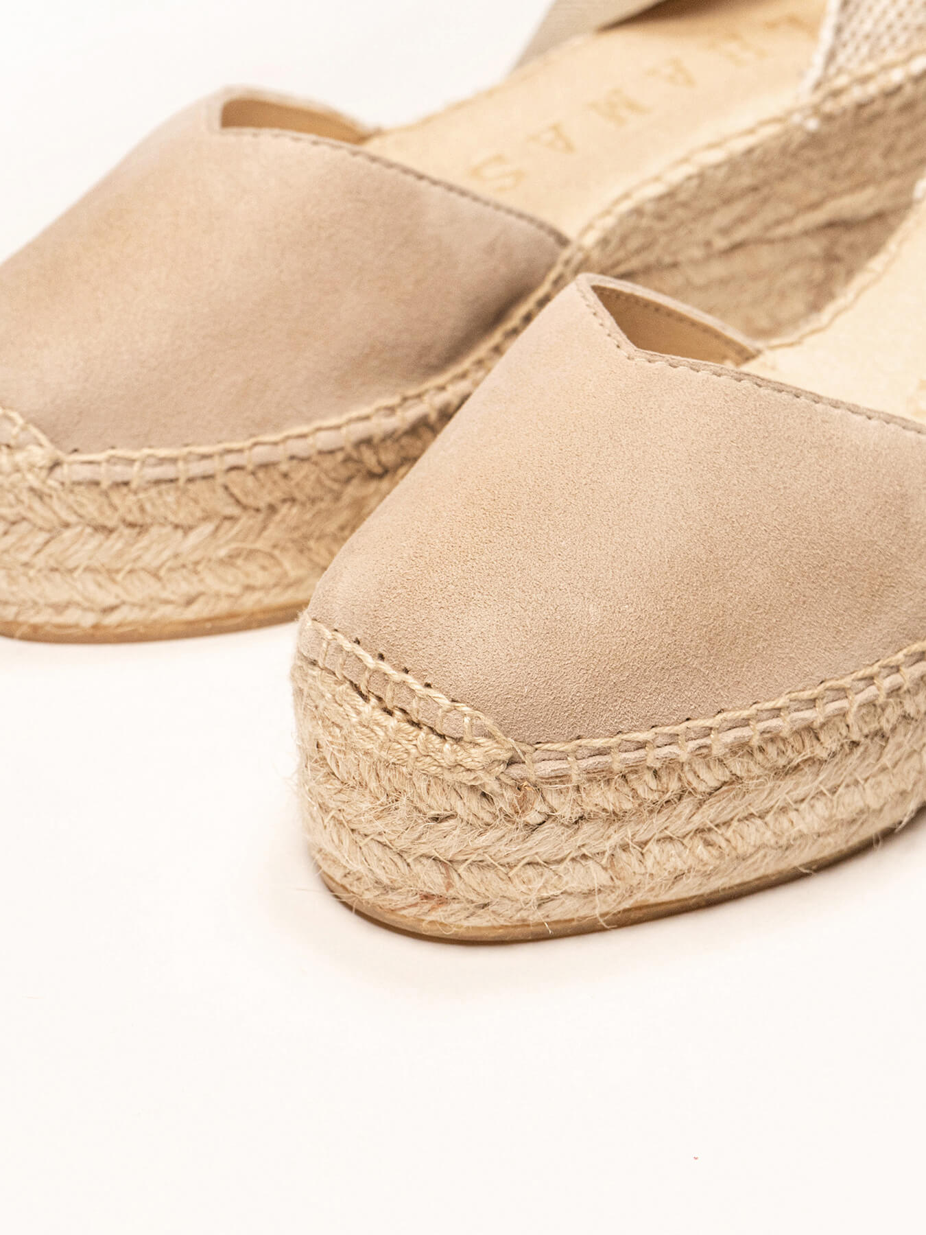 - Cunha em trança de juta natural com sola de borracha reciclada misturada com fibras naturais.